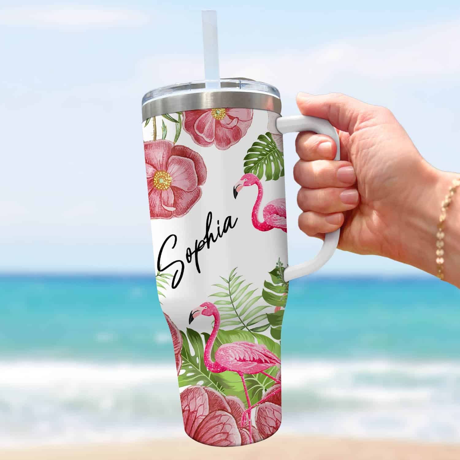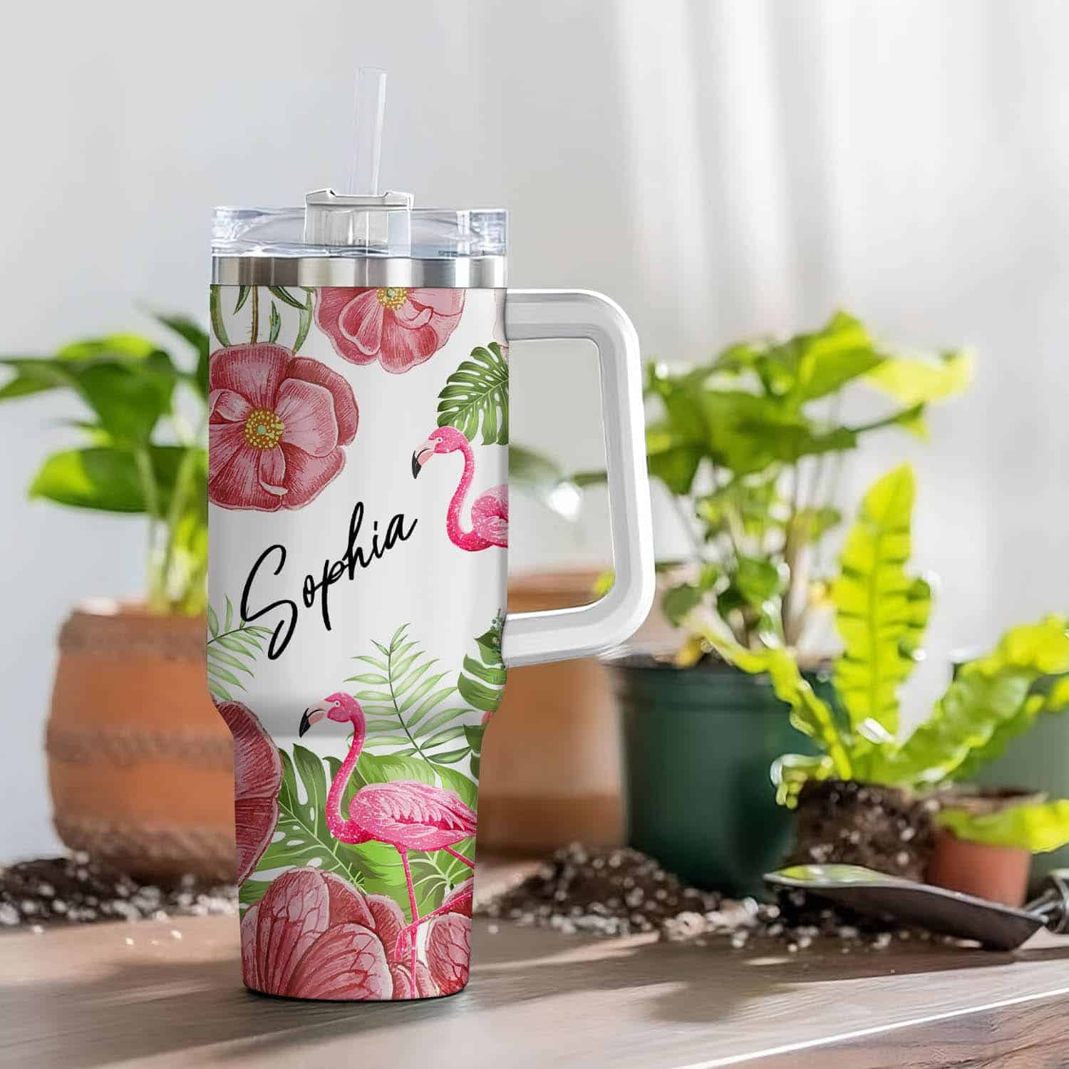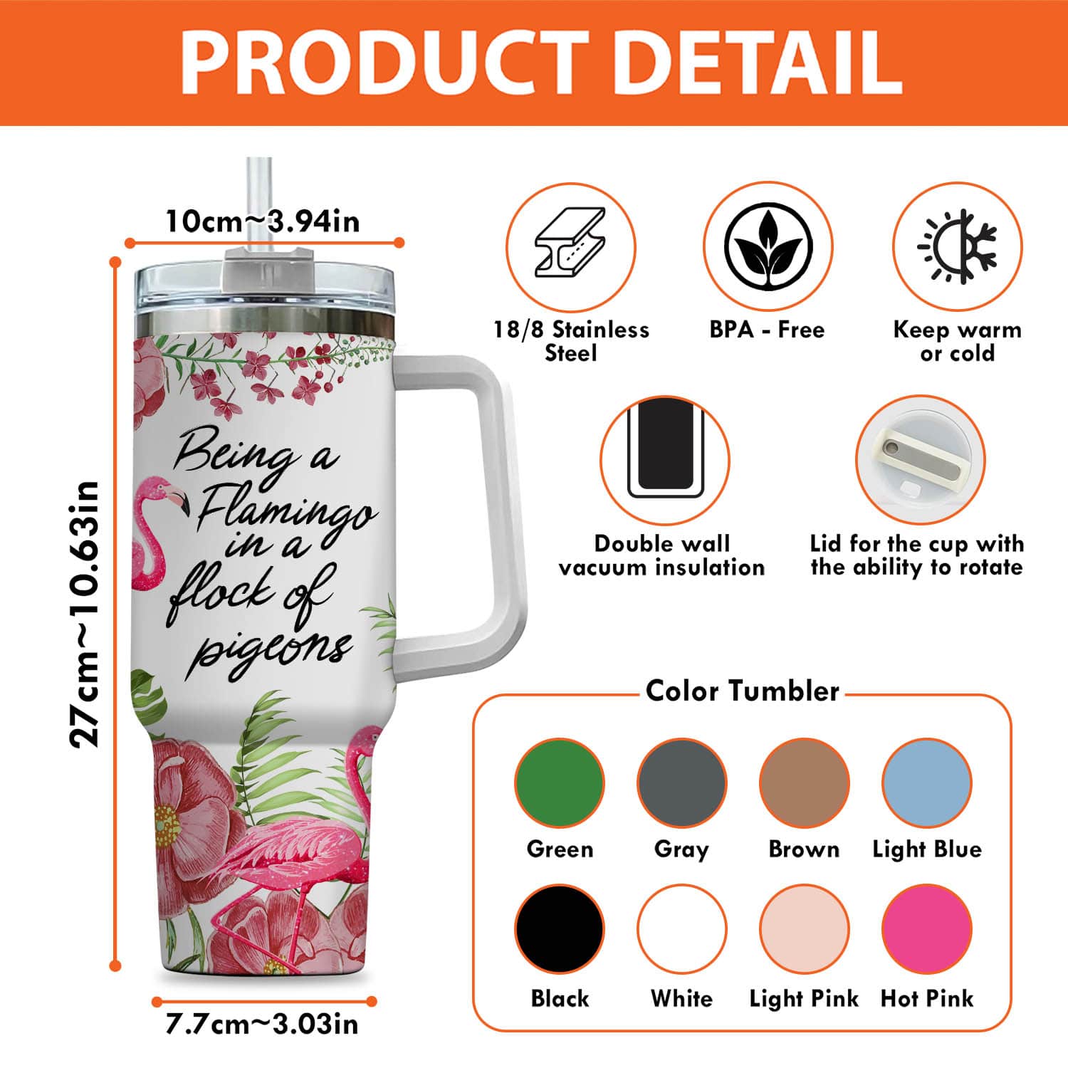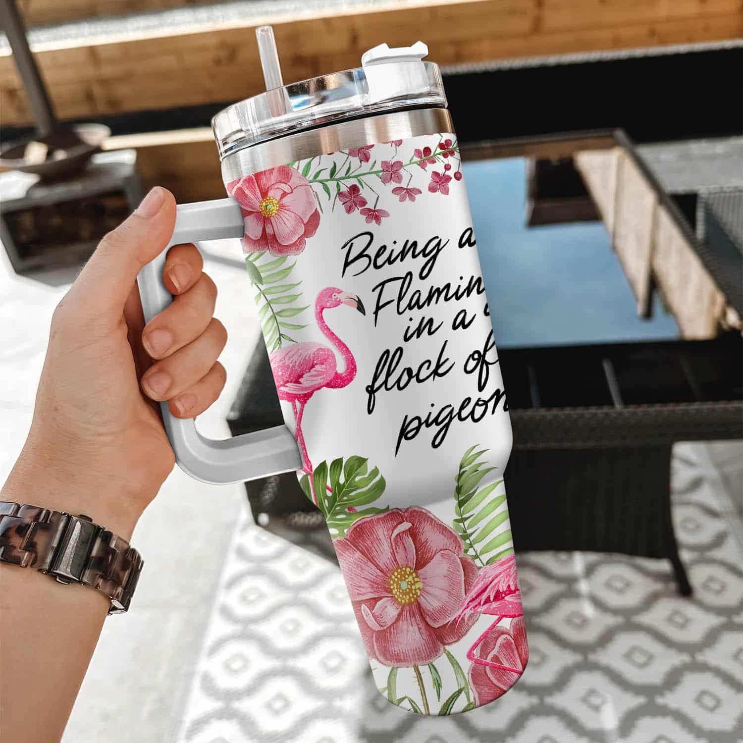 Let’s Shop Personalized Name 40 oz Flamingo Tumbler with Handle and Straw Lid – Being A Flamingo In a Flock Of Pigeons Tumbler!