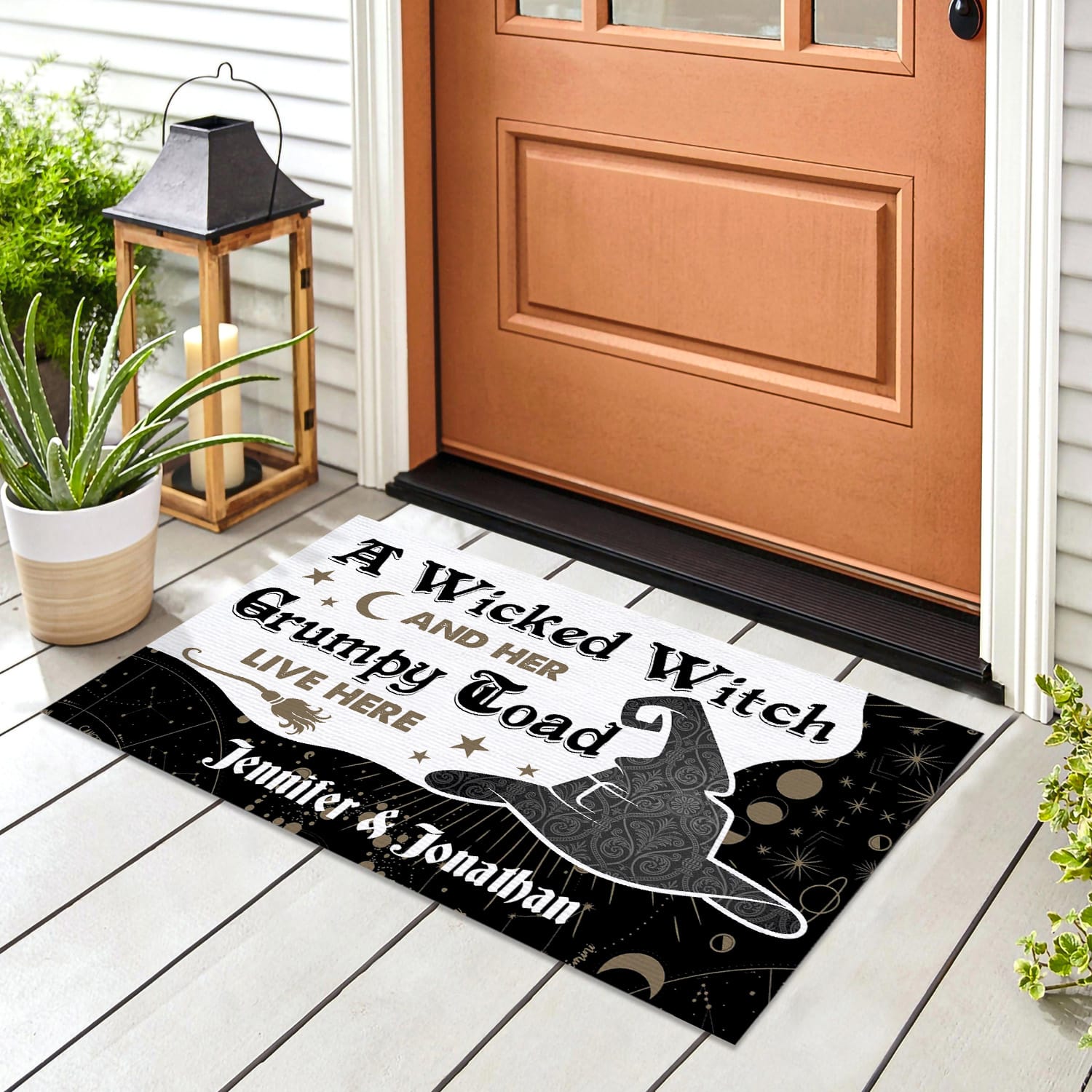 Let’s Shop Personalized Name A Wicked Witch And Her Grumpy Toad Live Here Indoor Outdoor Decorative Doormat – Funny Doormat!