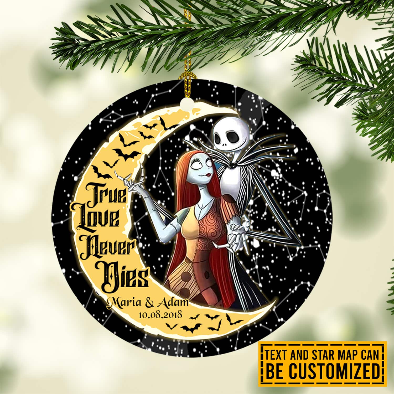 Let’s Shop Personalized Name and Star Map True Love Never Dies Jack and Sally Decorative Circle Christmas Ornament Keepsake – Customized Halloween Gift!