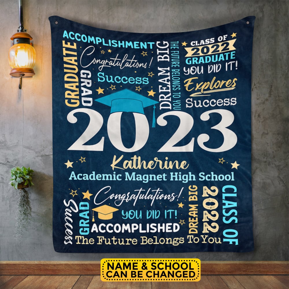 Let’s Shop Personalized Name Class of 2023 Graduation Blanket – Graduation gifts for Her and Him – Senior 2023 Custom Name Grad College Gifts!