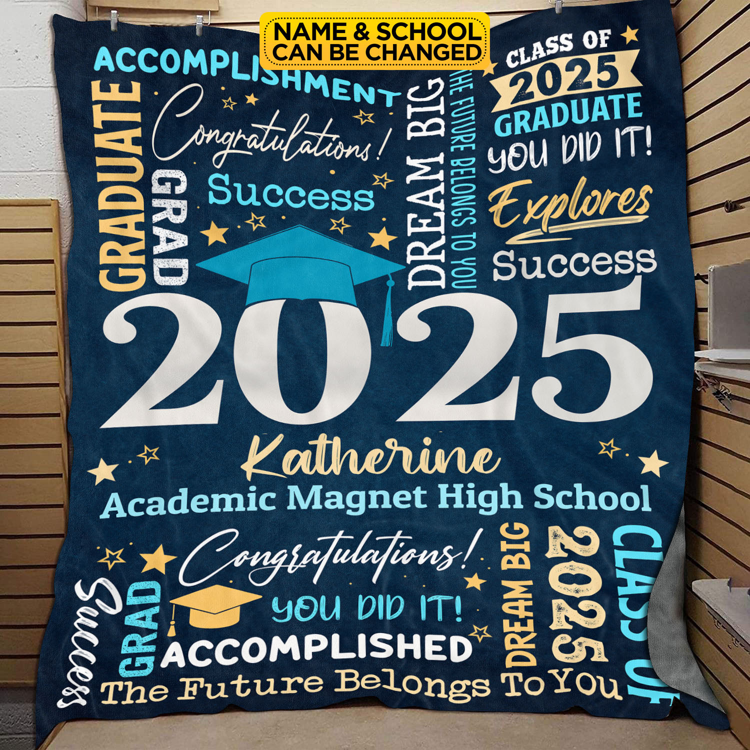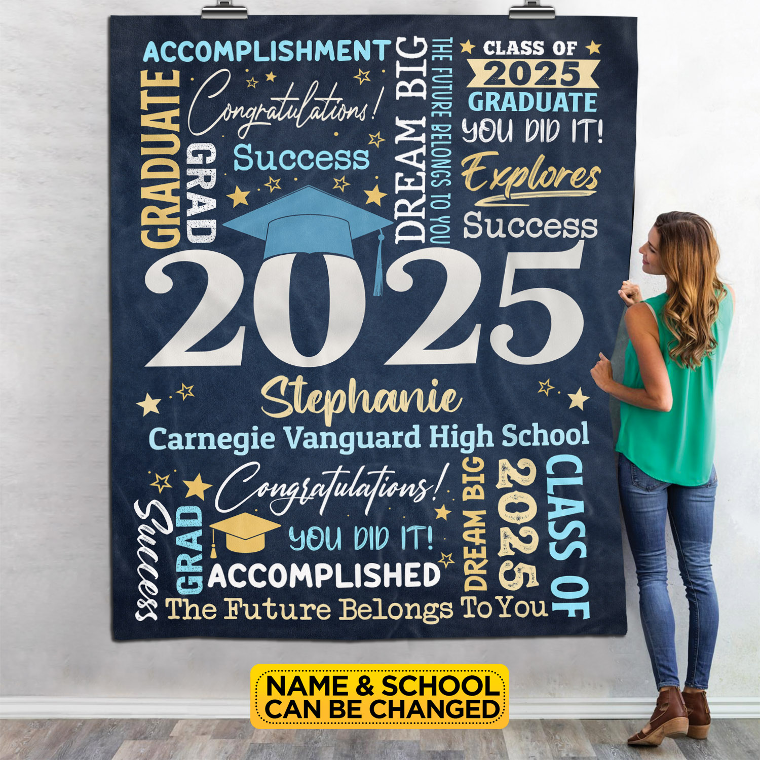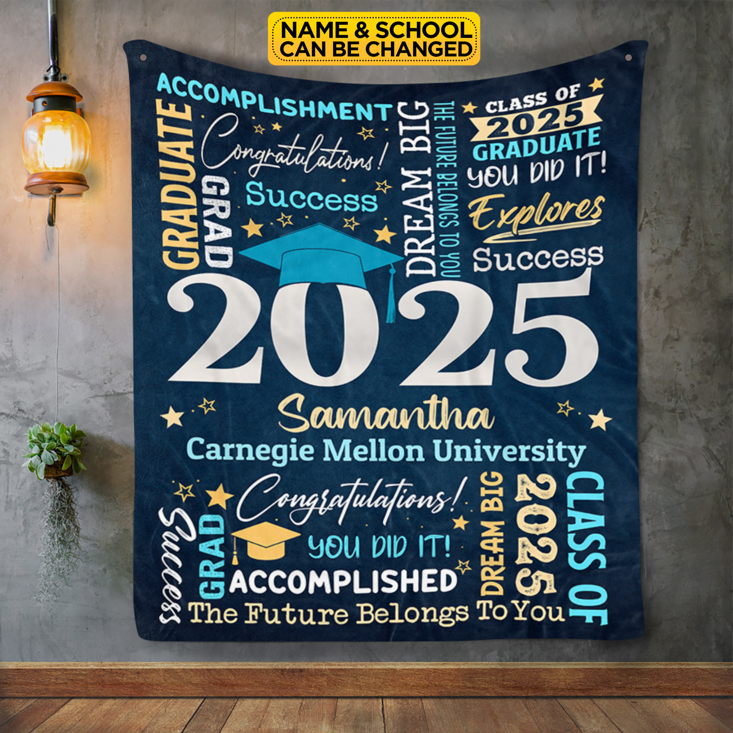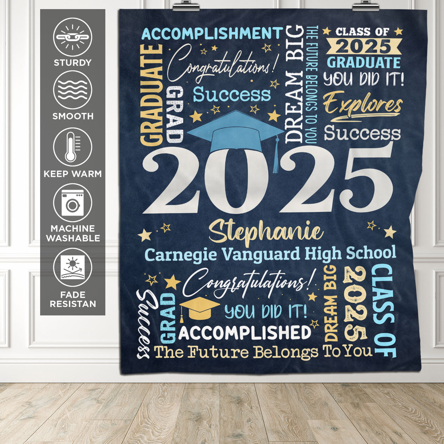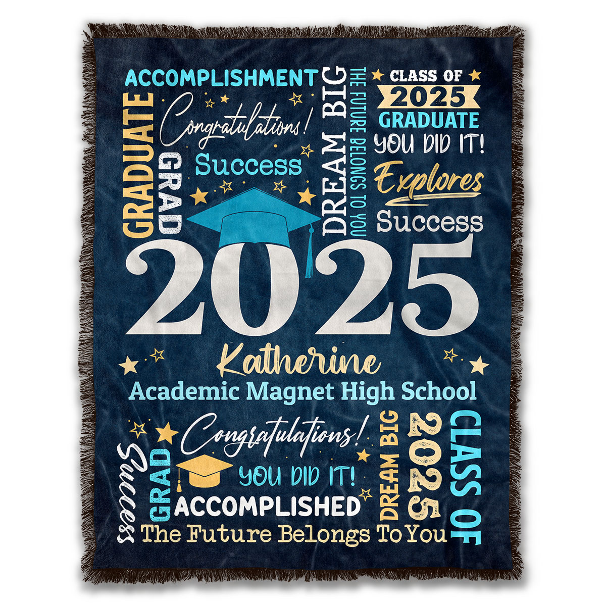 Let’s Shop Personalized Name Class of 2025 Graduation Blanket – Graduation gifts for Her and Him – Senior 2025 Custom Name Grad College Gifts!