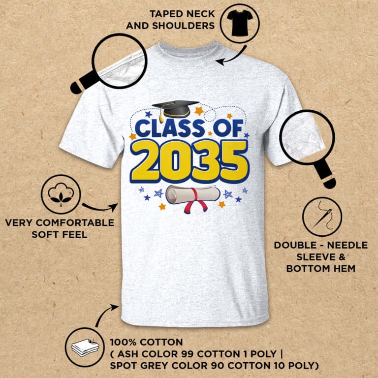 At CubeBik, besides custom apparel, we also offer tees, hoodies, sweaters, raglans, tanks, wall arts, canvases, posters, mugs, blankets, engraved jewelry, personalized necklaces, printed face masks, throw pillows, tote bags, hats, accessories and more on our website, so do not miss our other Class of 2035 Shirt, 1st Grade Shirt, 2nd Grade, 3rd Grade, Kindergarten Shirt, Personalized Name Class of 2035 Shirt, Custom Name Shirt, Custom Class of 2035 Shirt related merchandise. Moreover, all the products are made-to-order and one of a kind custom designs you can’t get elsewhere in normal stores. Let’s discover CubeBik.com now and find your favorite personalized items. We can’t wait to surprise and build beautiful memories with you and your loved ones.