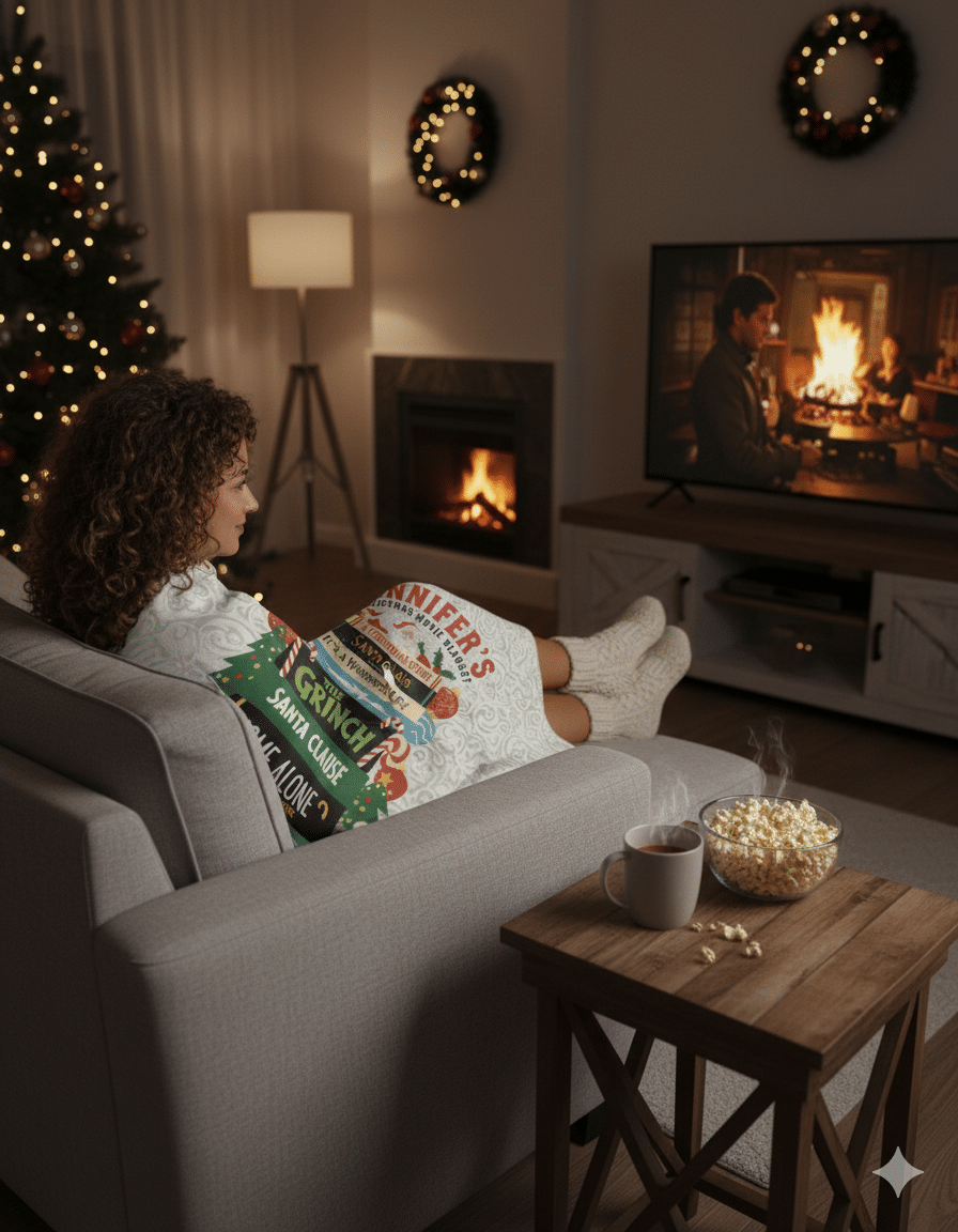 Let’s Shop Personalized Name Custom Christmas Movie Throw Blanket – Sherpa Blanket!