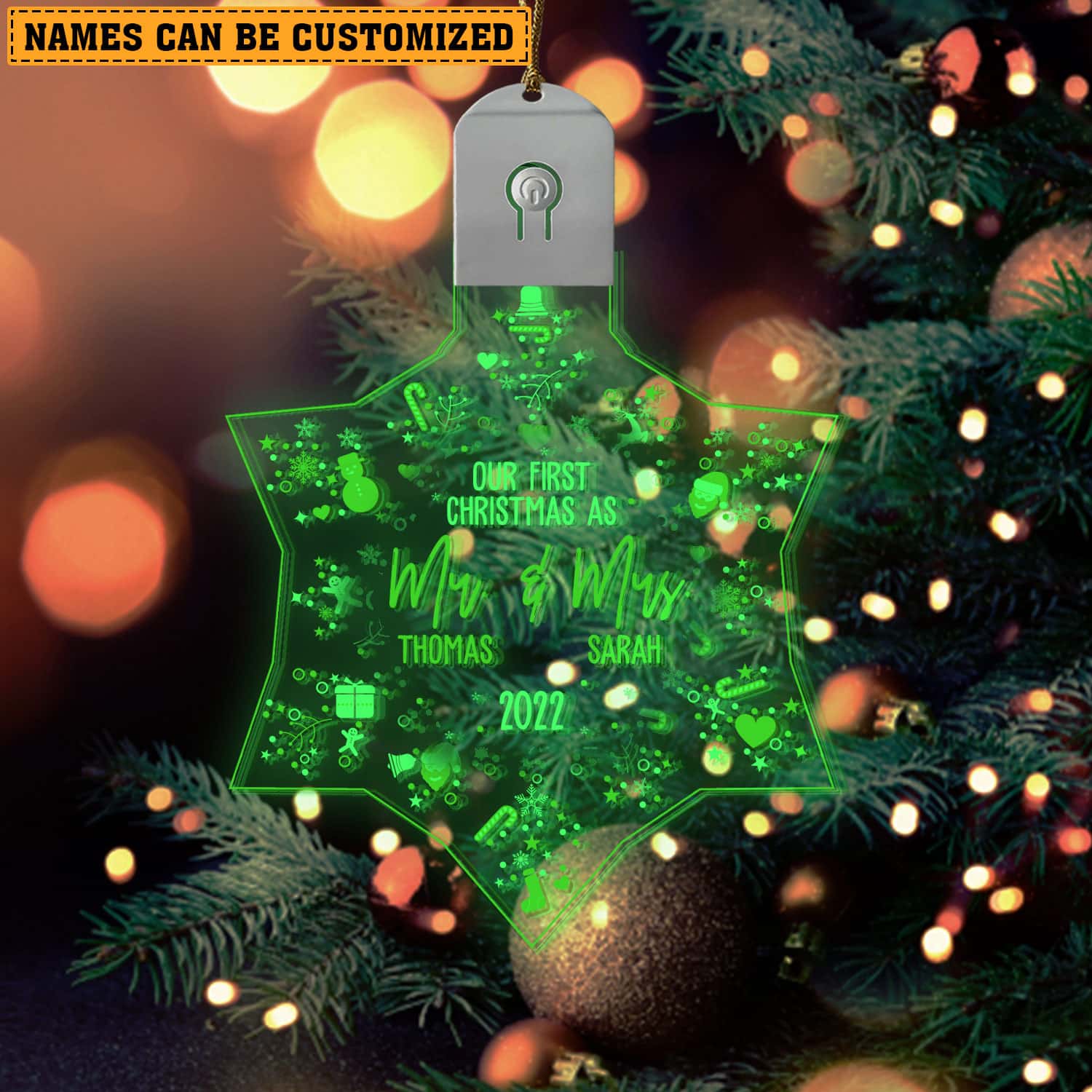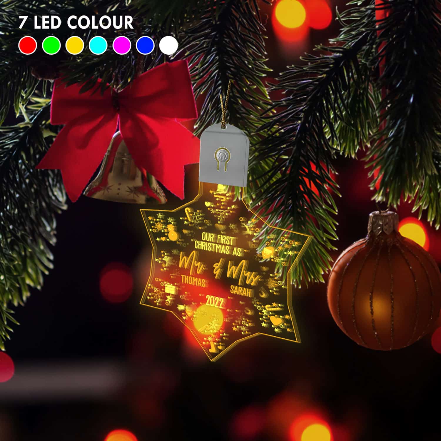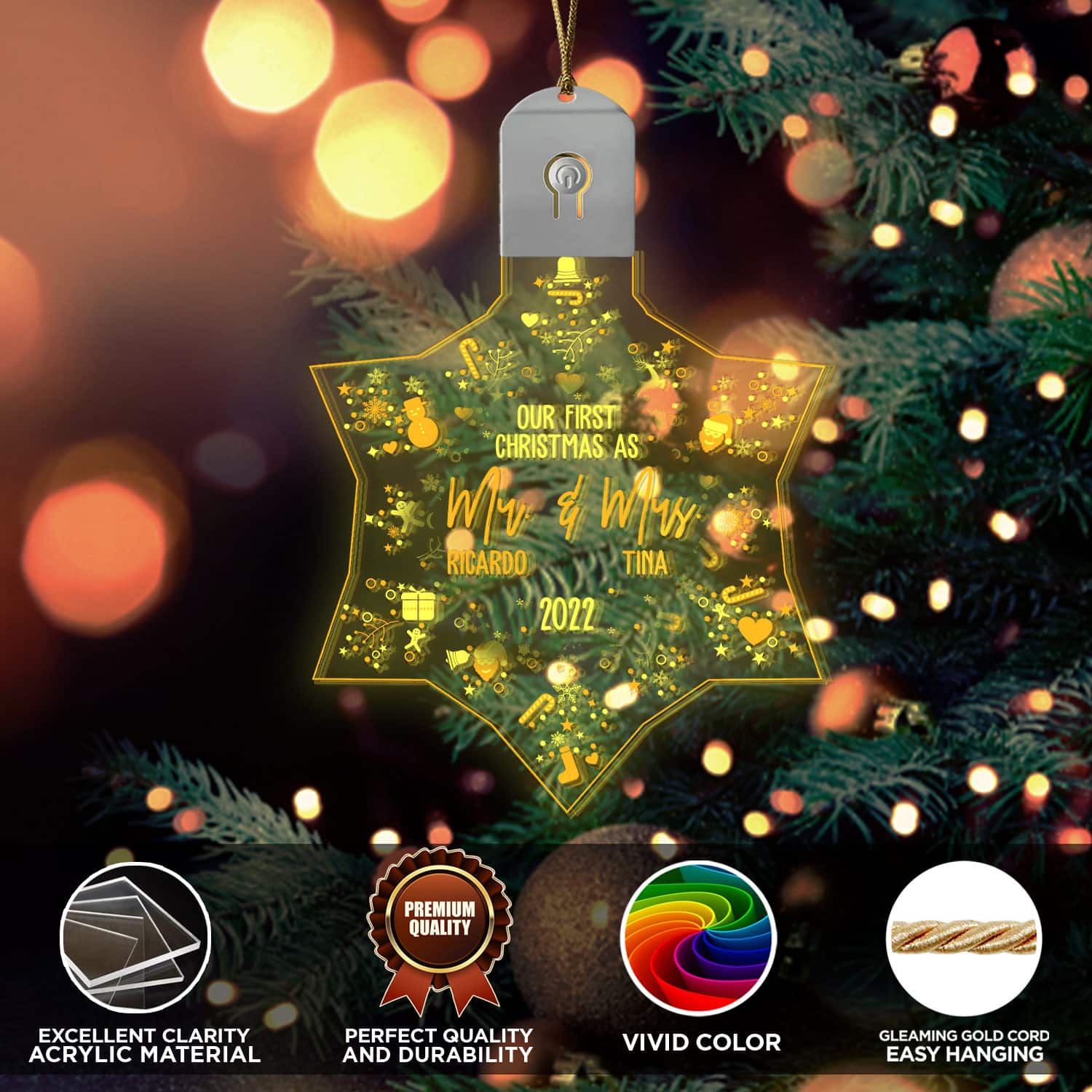 Let’s Shop Personalized Name First Christmas As Mr & Mrs 2022 LED Ornament – First Christmas Married Couple Ornament Christmas Tree!
