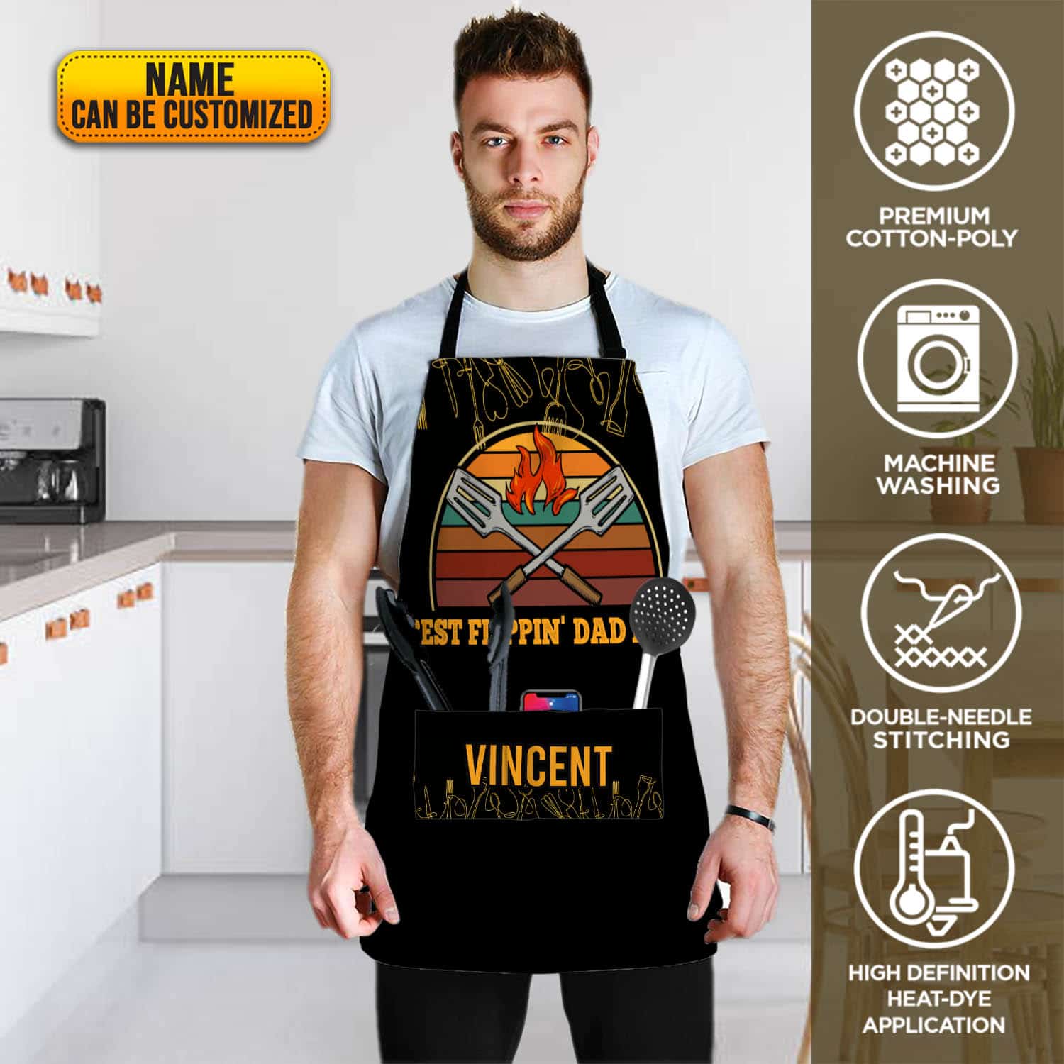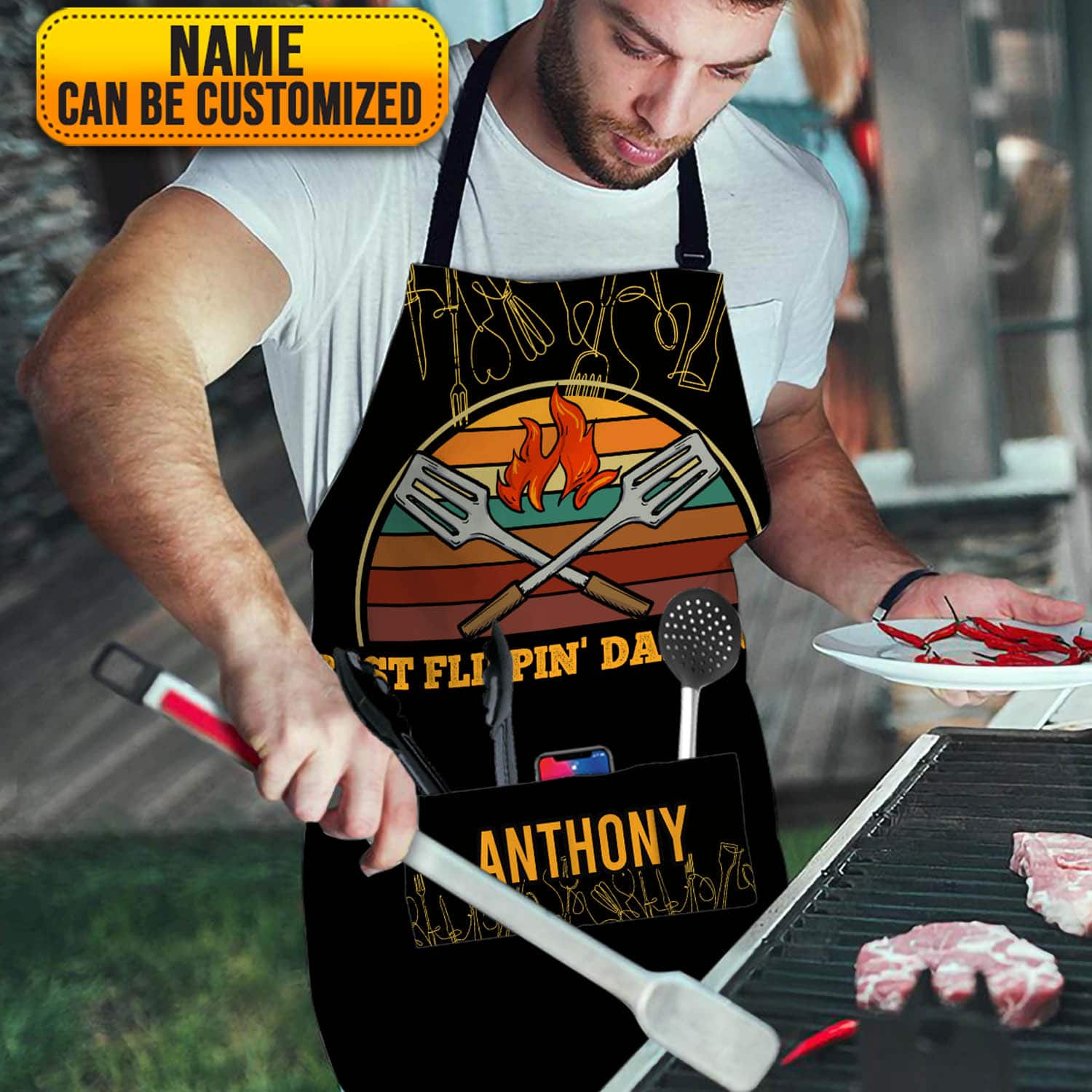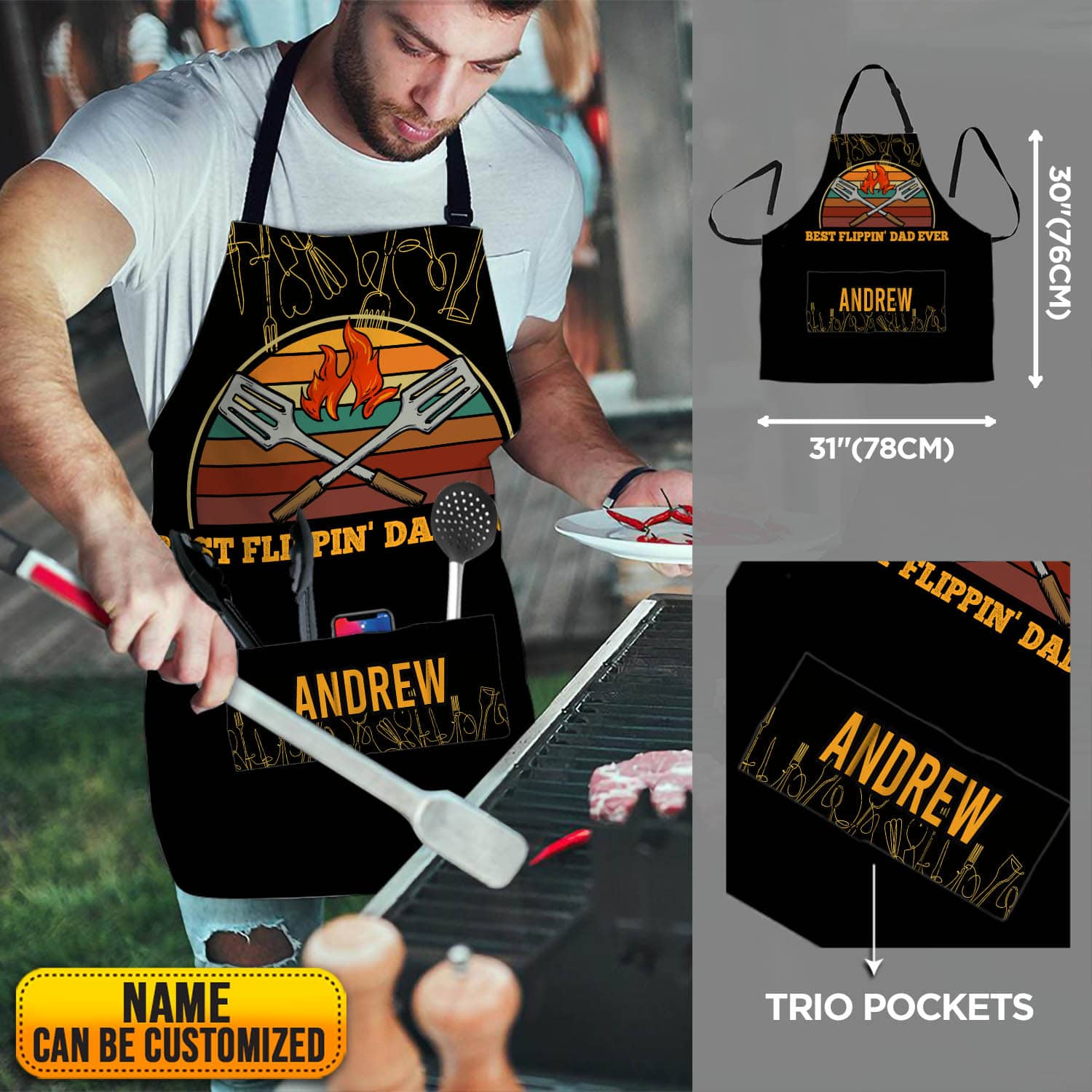 Let’s Shop Personalized Name Flippin Dad Three Pocket Apron – BBQ Kitchen Cooking Chef Birthday Fathers Day – Grilling Vintage Aprons!