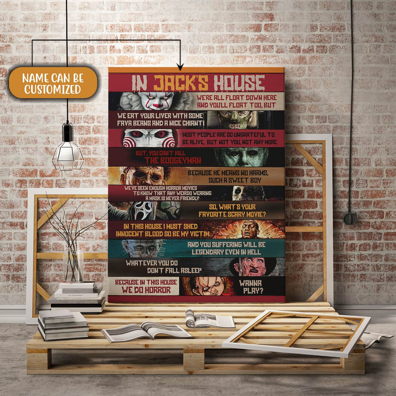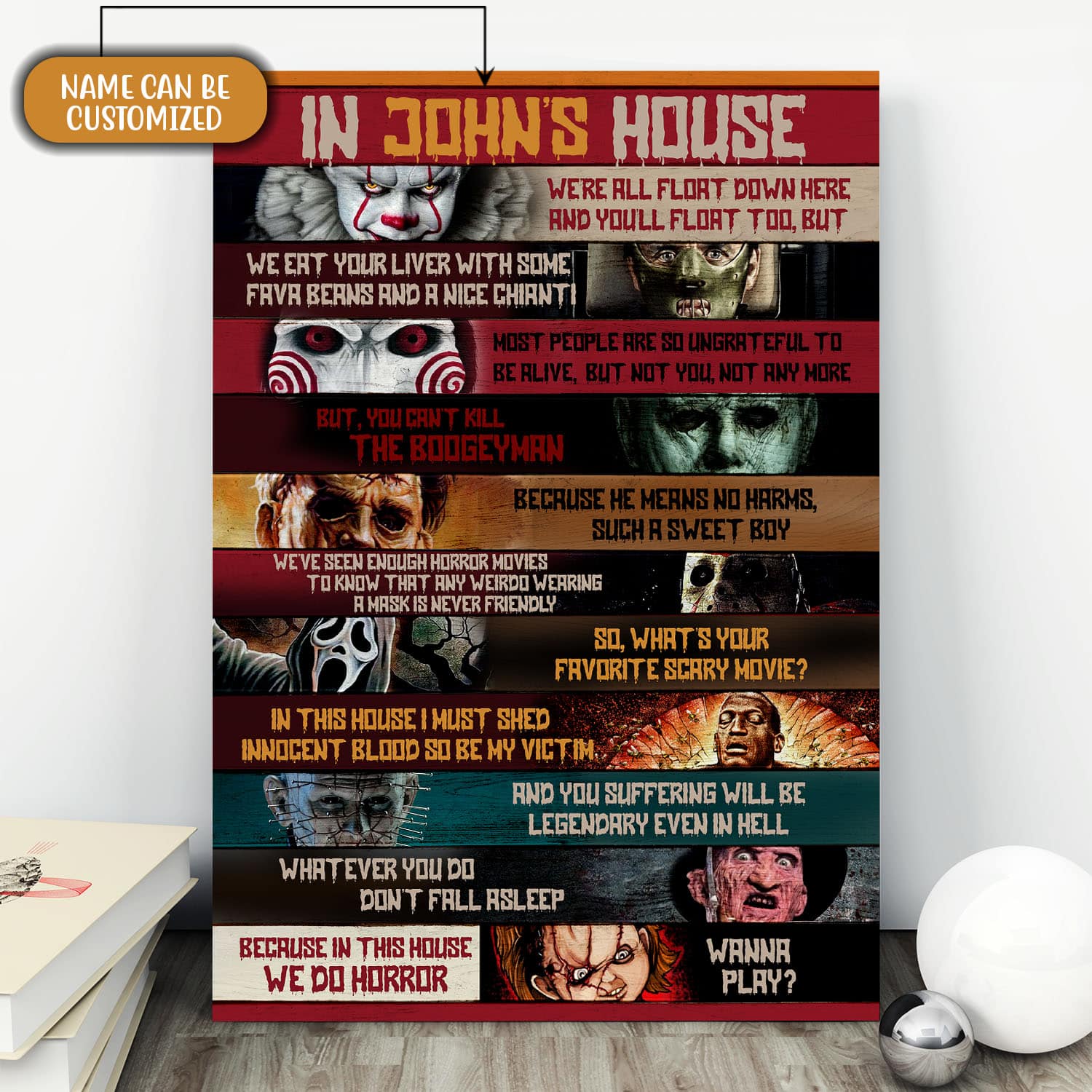 Let’s Shop Personalized Name in This House We Do Horror Wanna Play Halloween Characters Canvas Prints-Home Decor Wall Art-Poster!