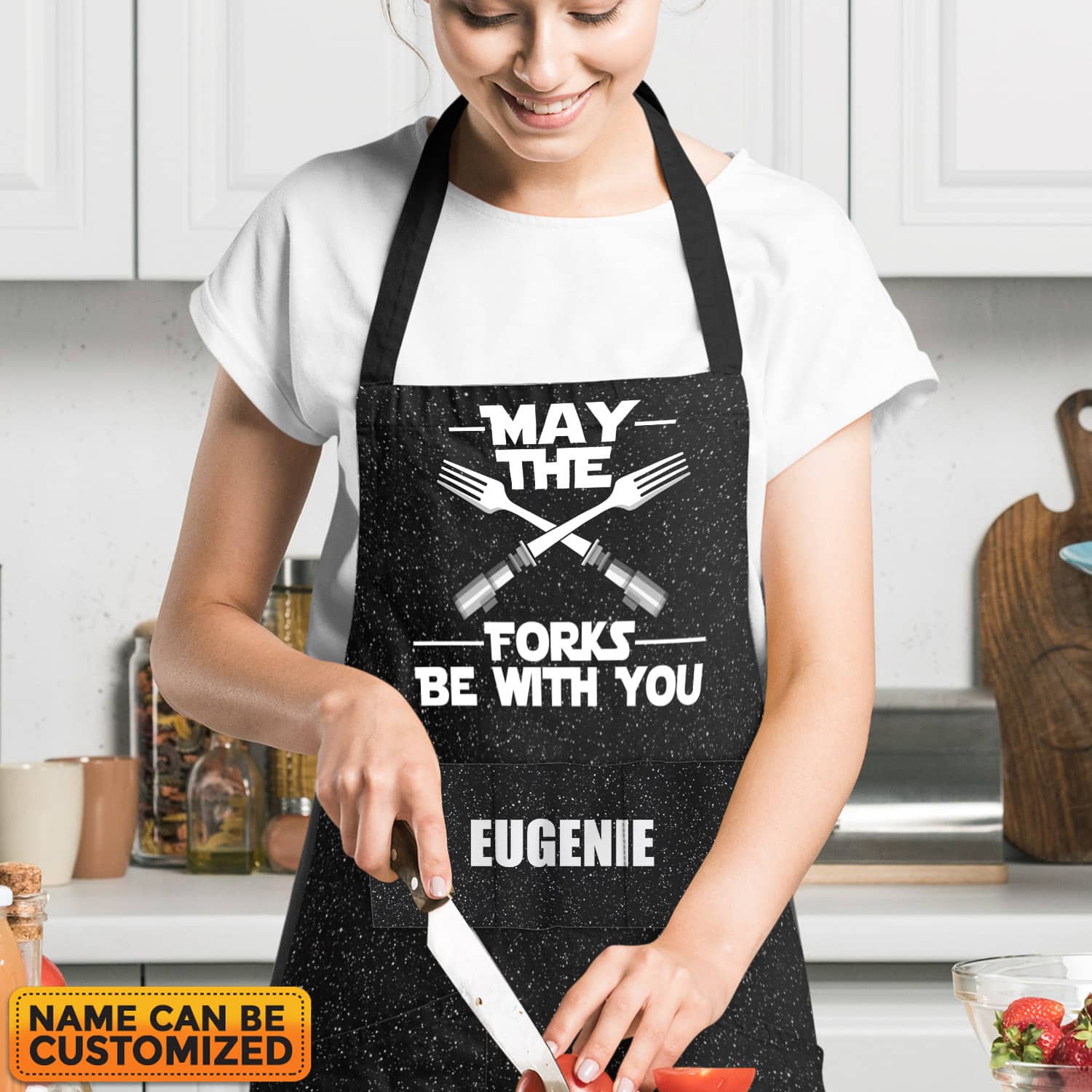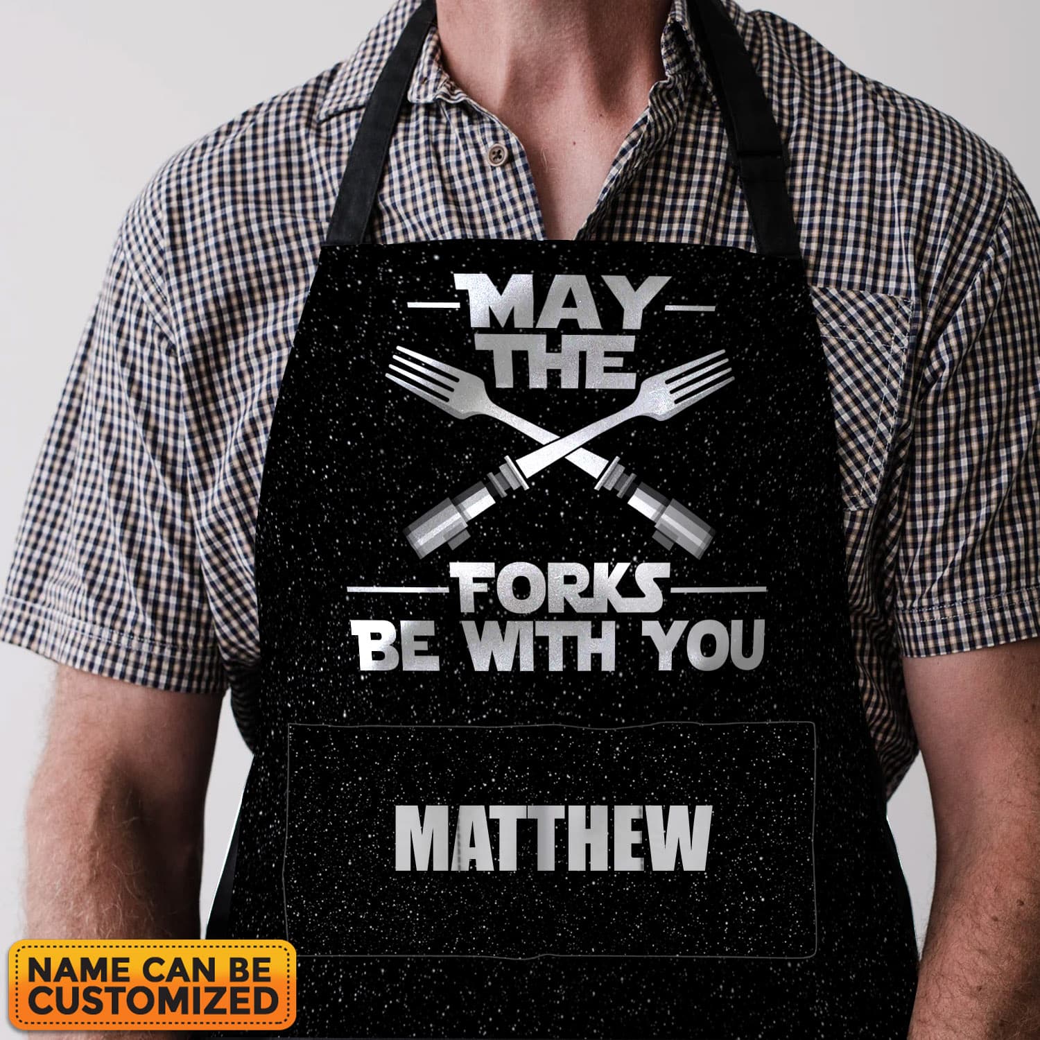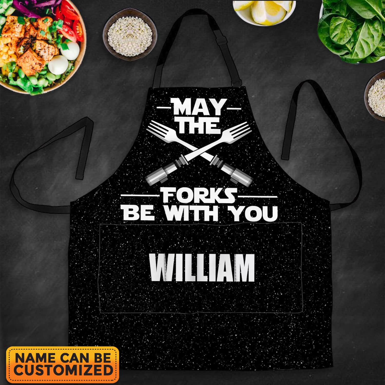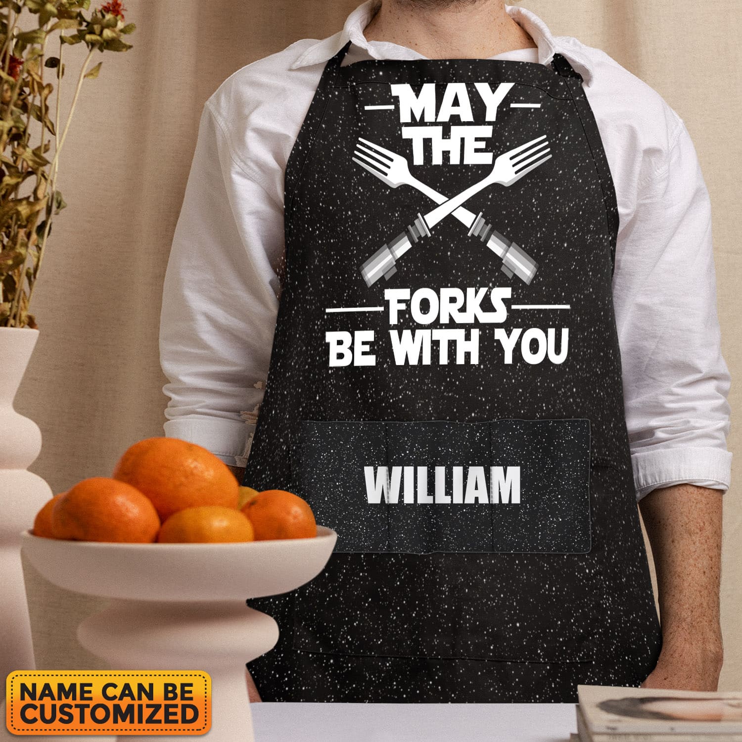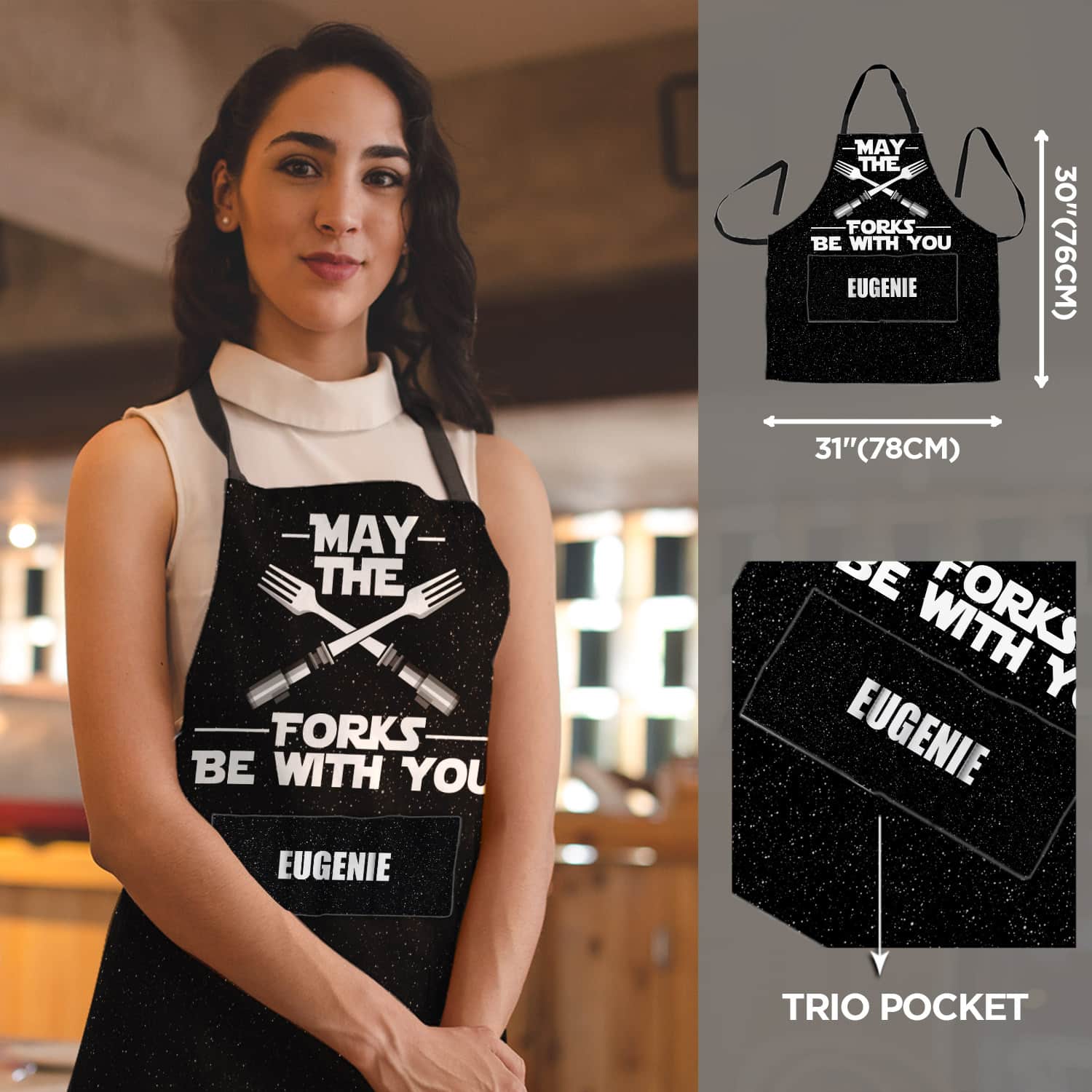 Let’s Shop Personalized Name May The Forks Be With You Apron with Three Pocket – Novelty Funny Cooking Apron for Movie Fans – Funny Apron!