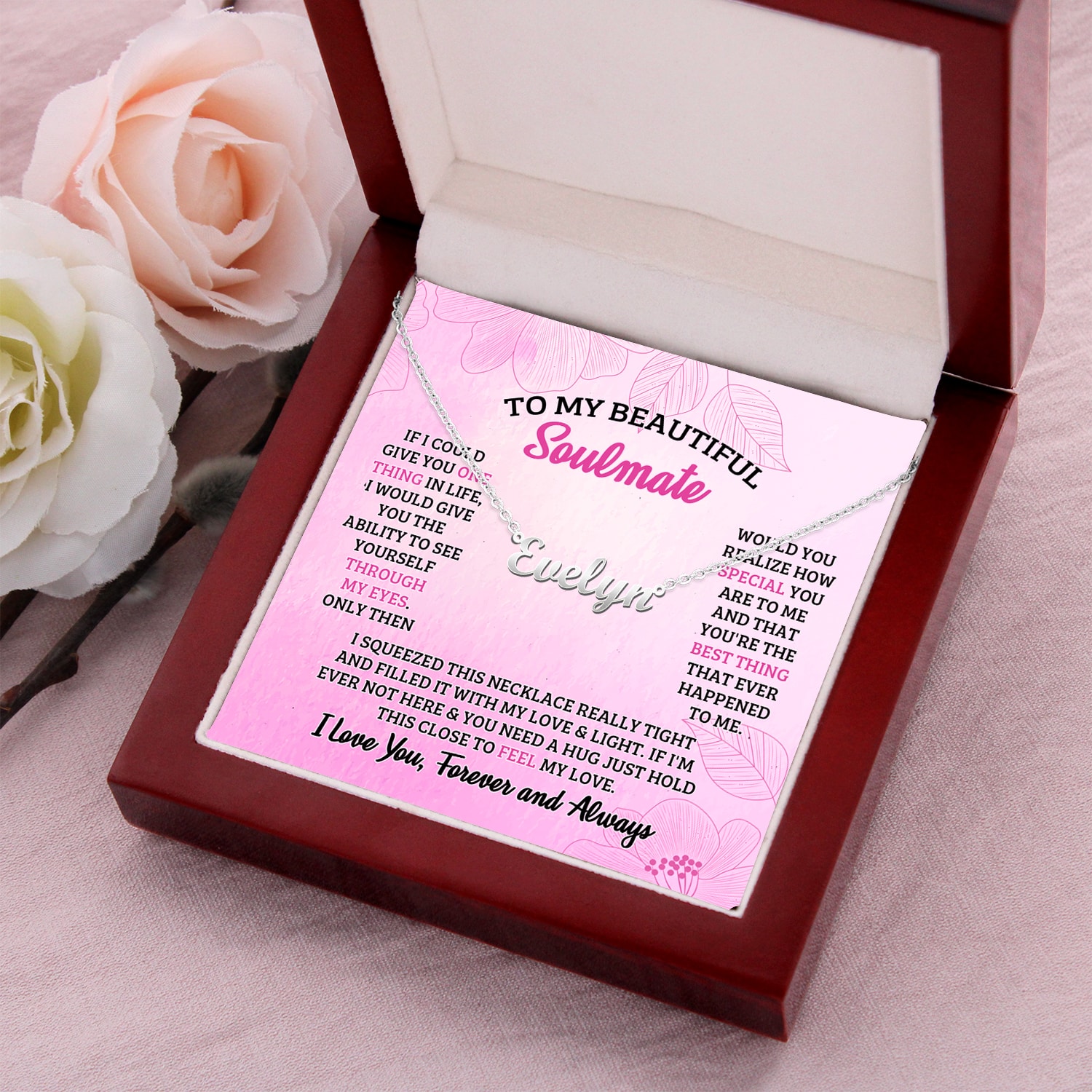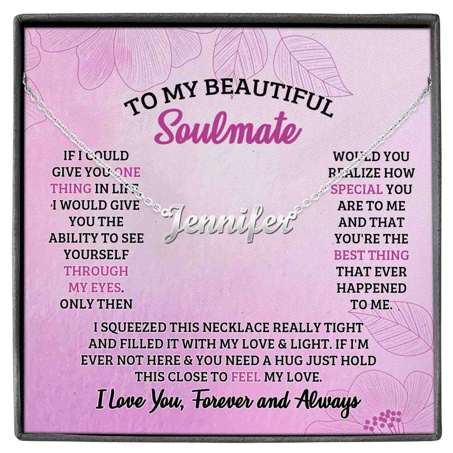 Let’s Shop Personalized Name Necklace To My Beautiful Soulmate – Custom Name Soulmate Valentine Necklace – Wife Gifts From Husband!