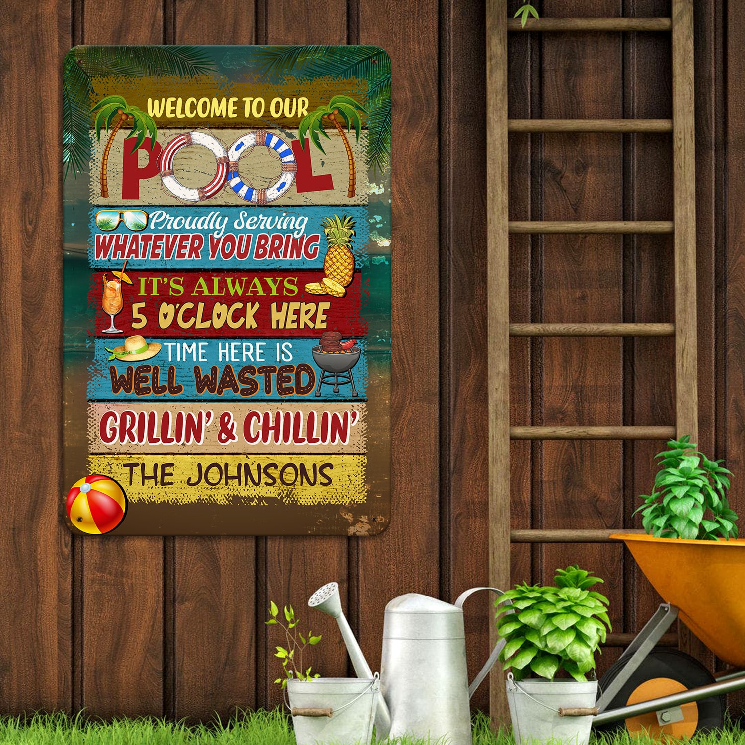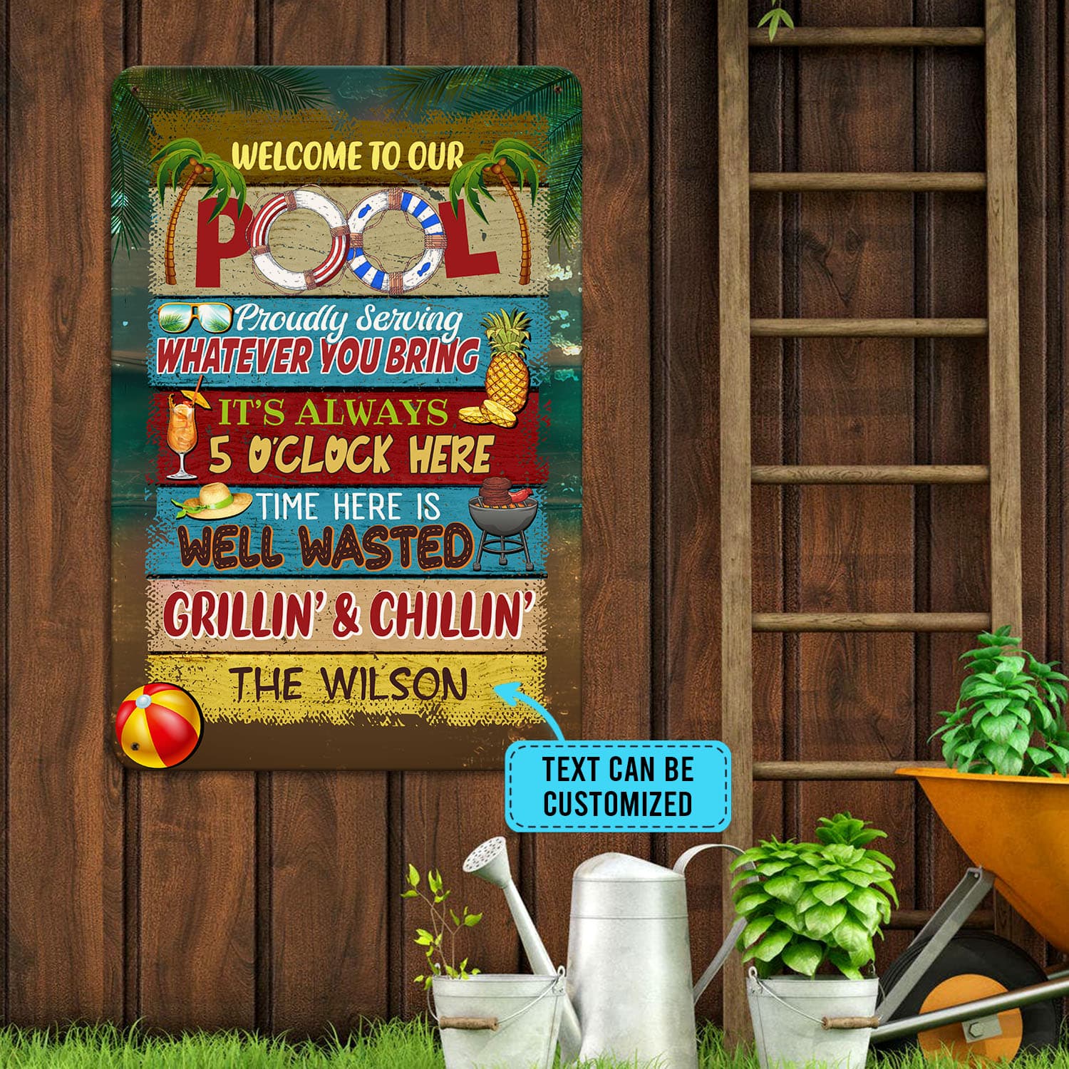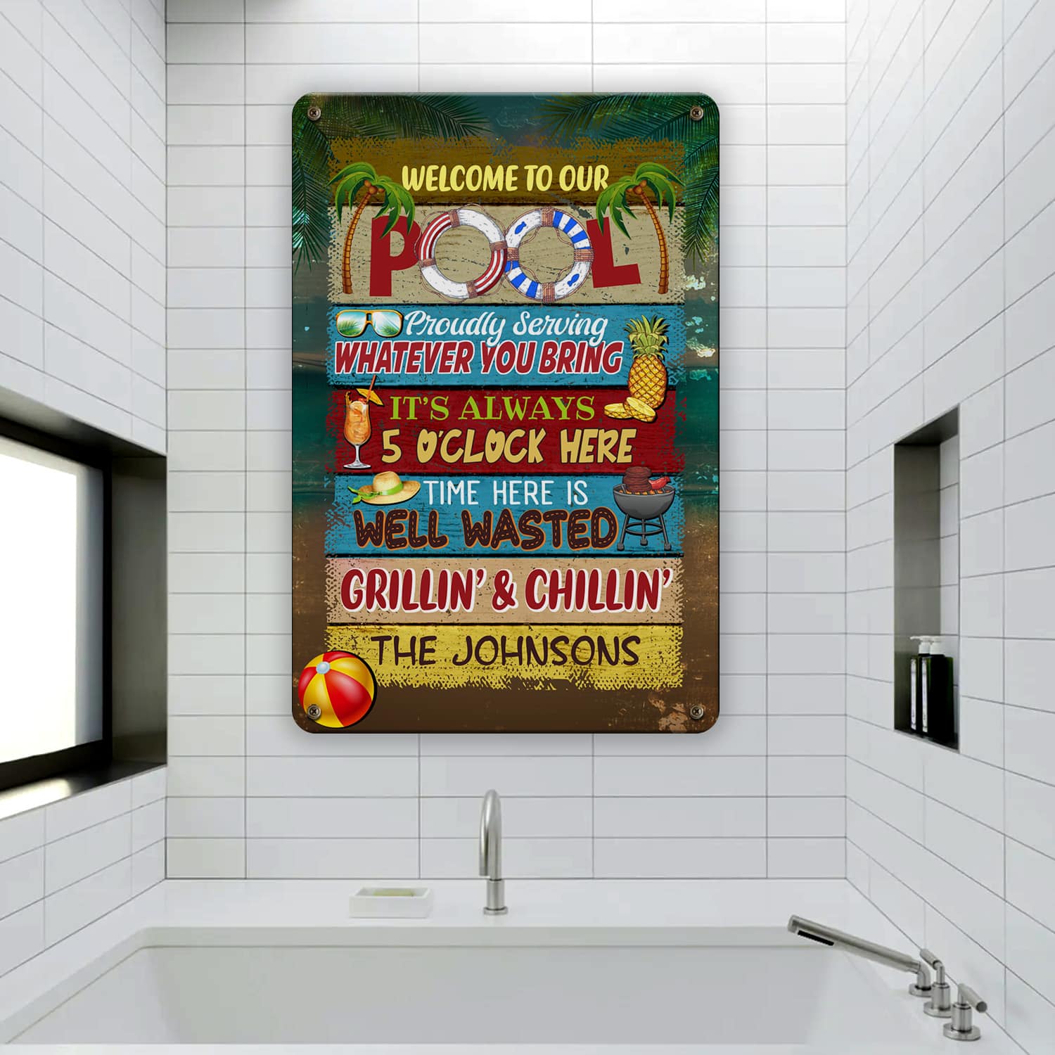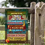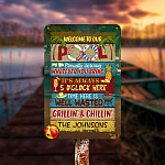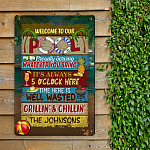 Let’s Shop Personalized Name Sign Welcome to Our Pool Outdoor Metal Sign – Pool Proudly Serving Whatever You Bring Customized Name Metal Sign!