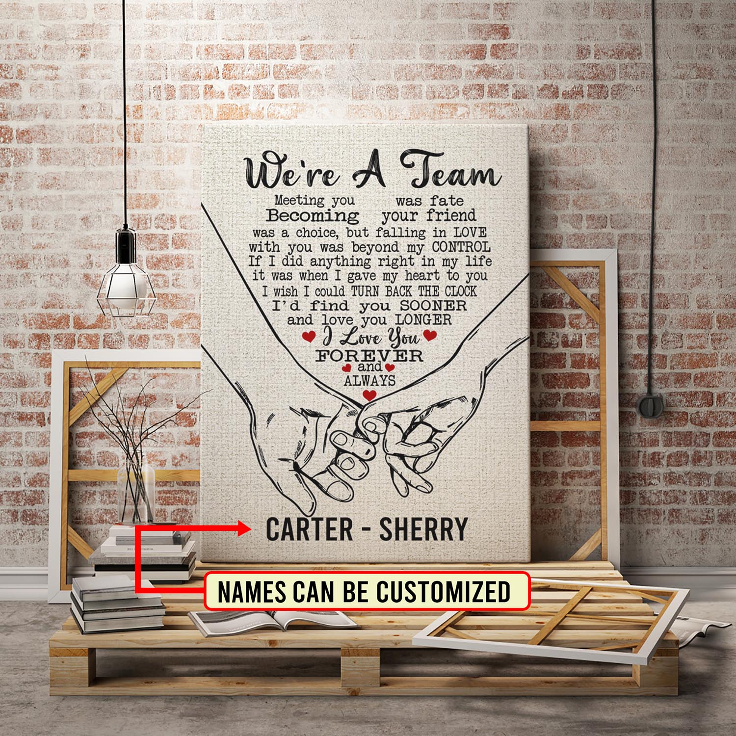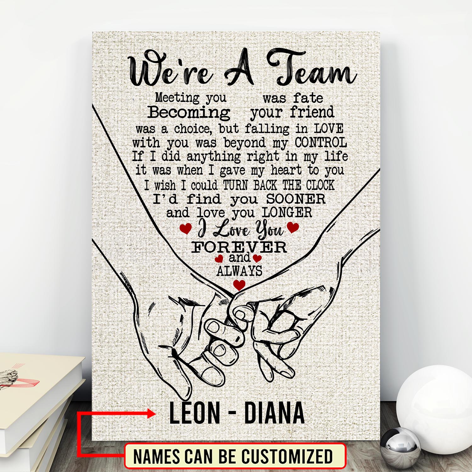 Let’s Shop Personalized Name We Are a Team Meeting You Was Fate Couple Holding Hands Canvas Prints – Unframed Poster!