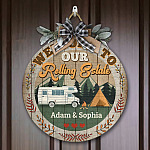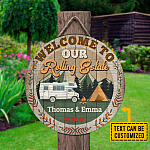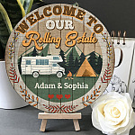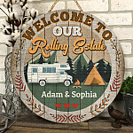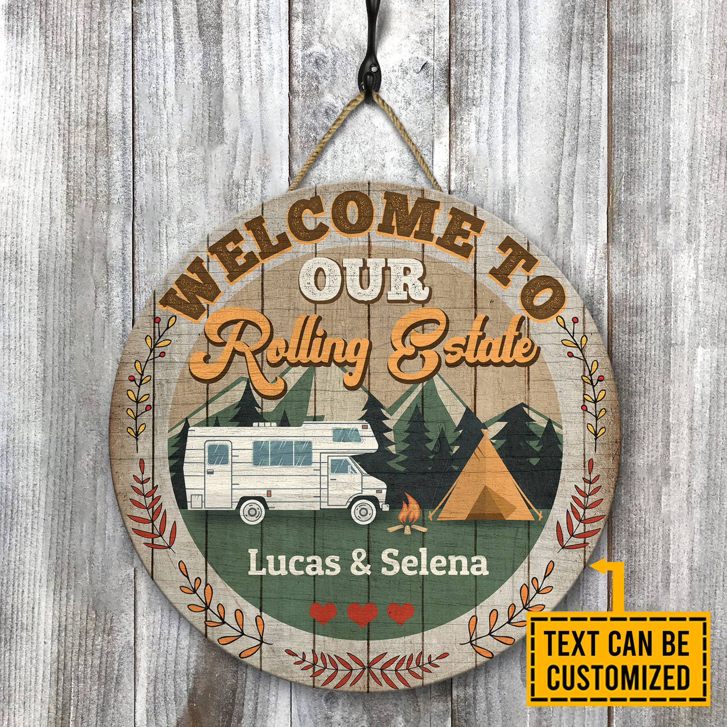 Let’s Shop Personalized Name Welcome To Our Rolling Estate Wooden Door Sign – Camping Sign!