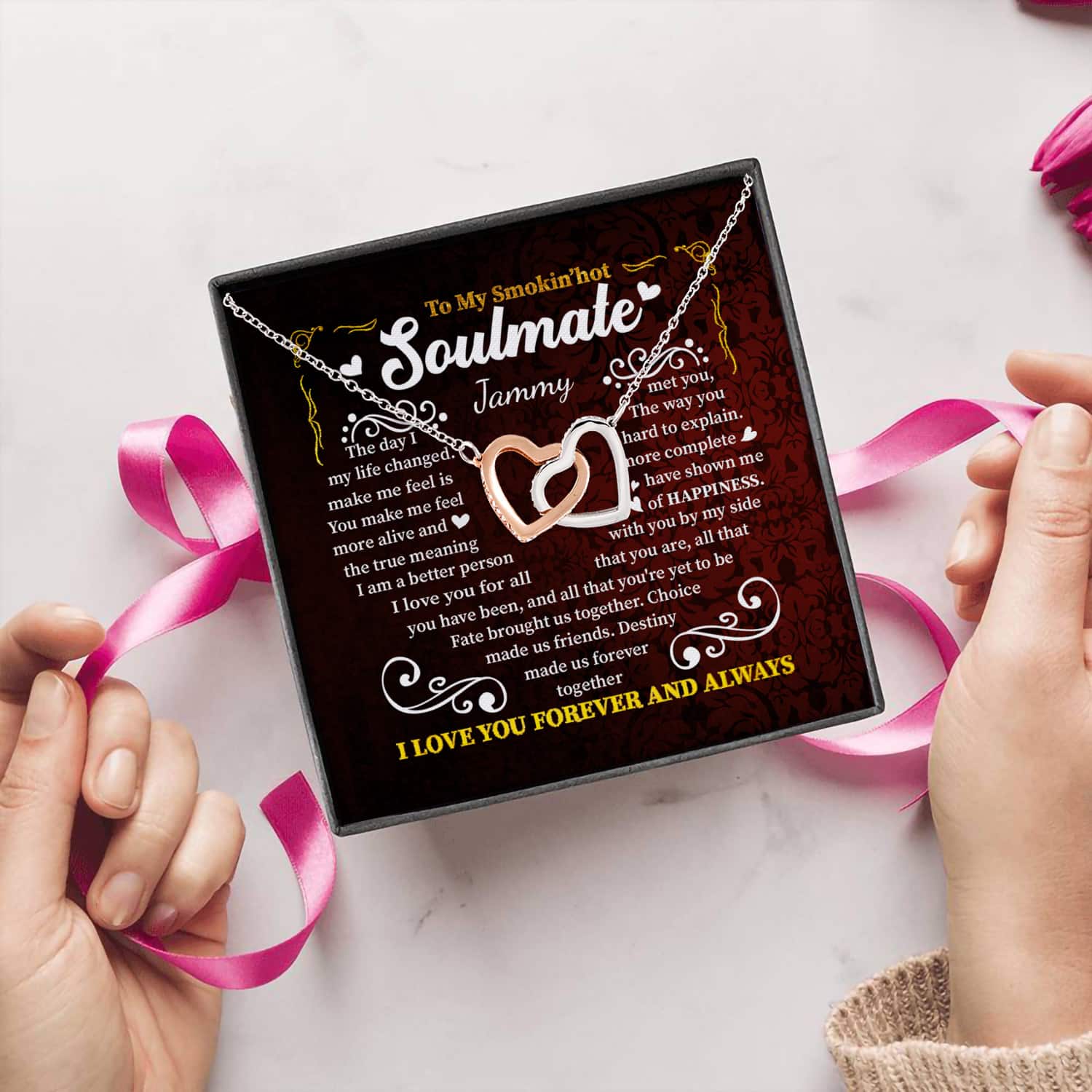 Are you spending too much time to find creative merchandise for you or suitable & special gifts for your mommy, your daddy, your son, your daughter, your children, your friends or someone you love? The struggle is over because we have various Smoking Hot Soulmate Necklace for Women, Soulmate Necklace for Women, Hot Soulmate Necklace, Wife to Be Necklace, Fiancée Necklace, Smokin Hot Wife Necklace, Anniversary Necklace for Women, Valentine Necklace for Women, Personalized Necklace for Women, the Day I Met You My Life Changed Necklace, Fate Brought Us Together, to My Smokin’ Hot Soulmate Necklace which will make perfect presents for your beloveds. In order to make your present stand out, we have created lots of unique and awesome customized photo gifts & personalized designs.