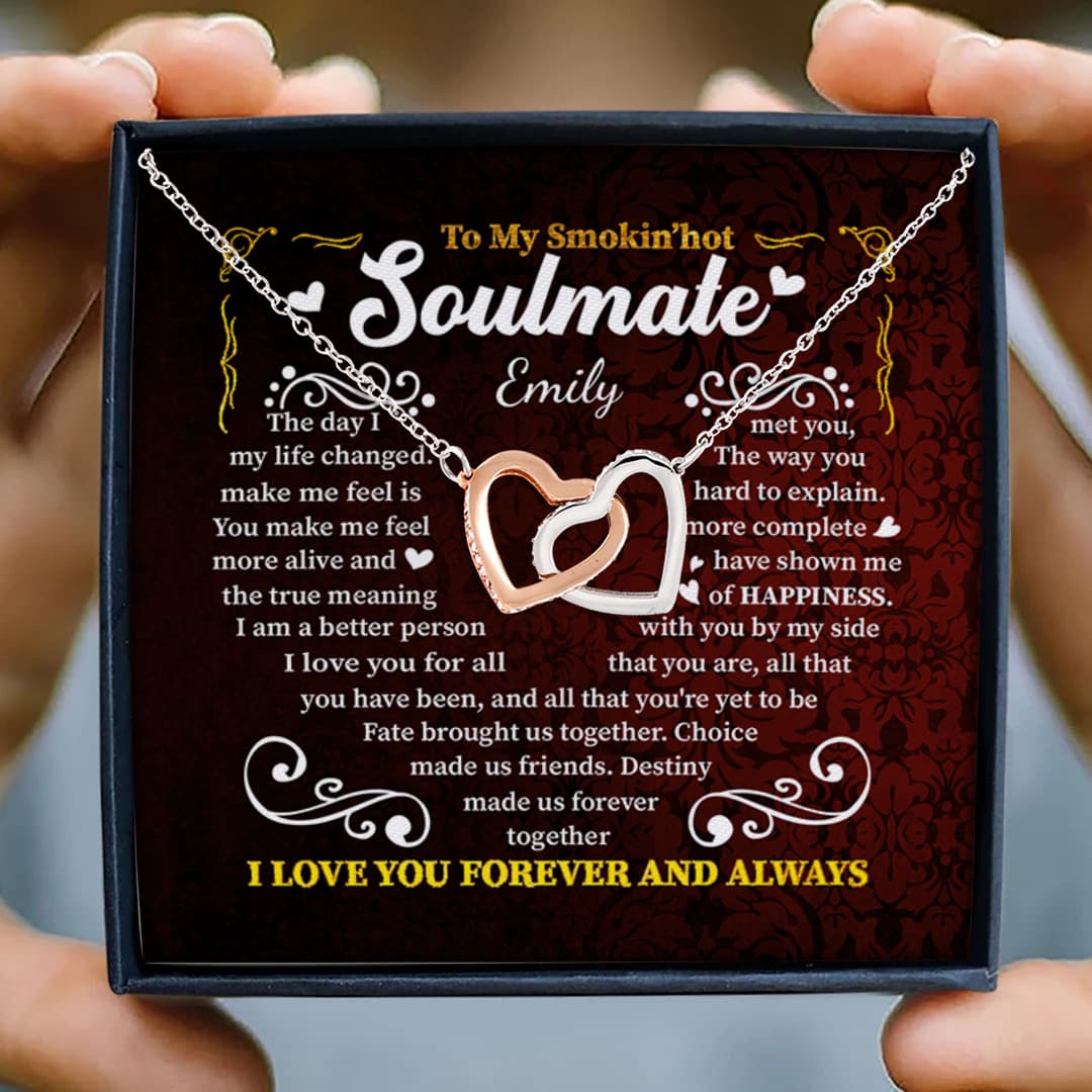 Let’s Shop Personalized to My Smokin’ Hot Soulmate the Day I Met You My Life Changed Interlocking Hearts Pendant Necklace!