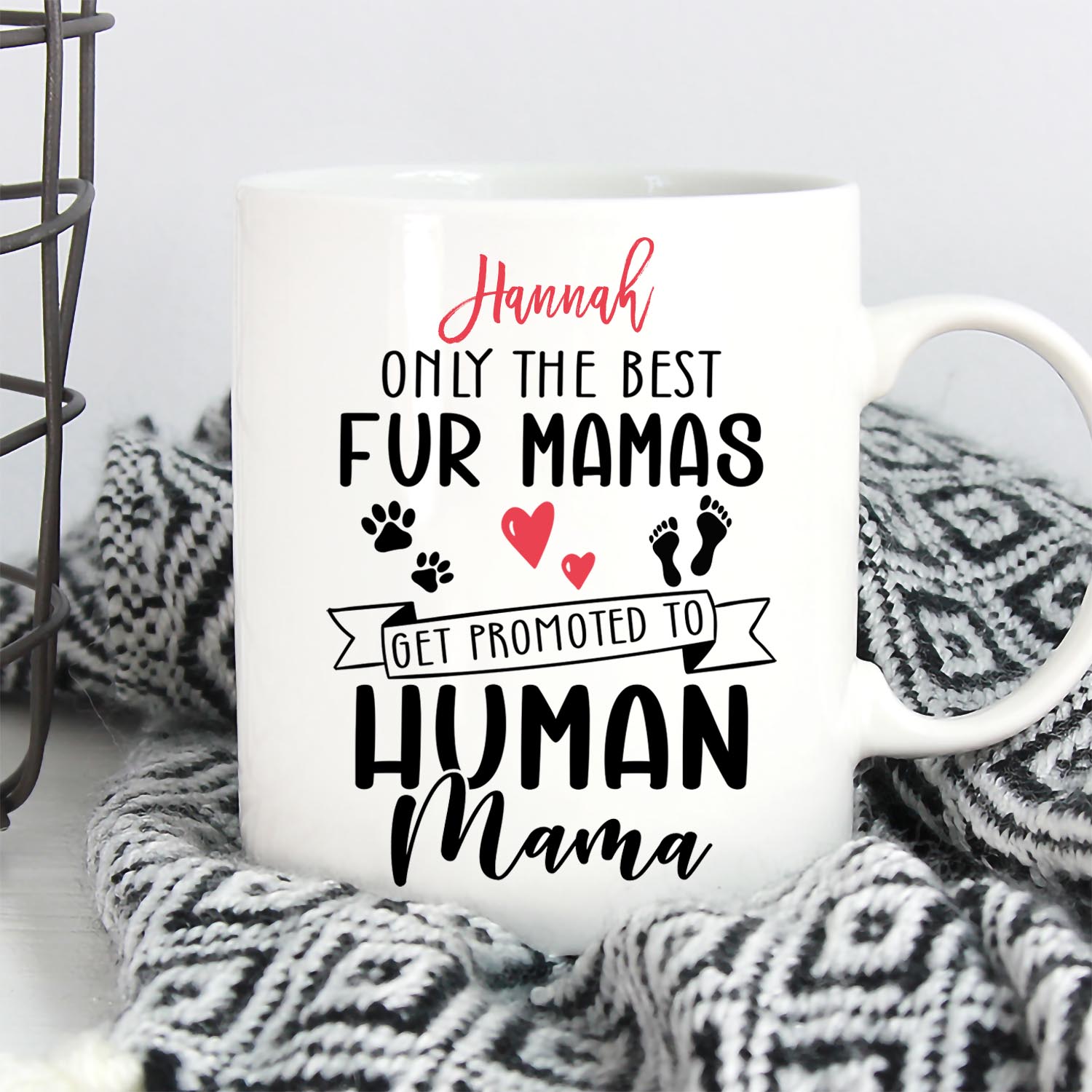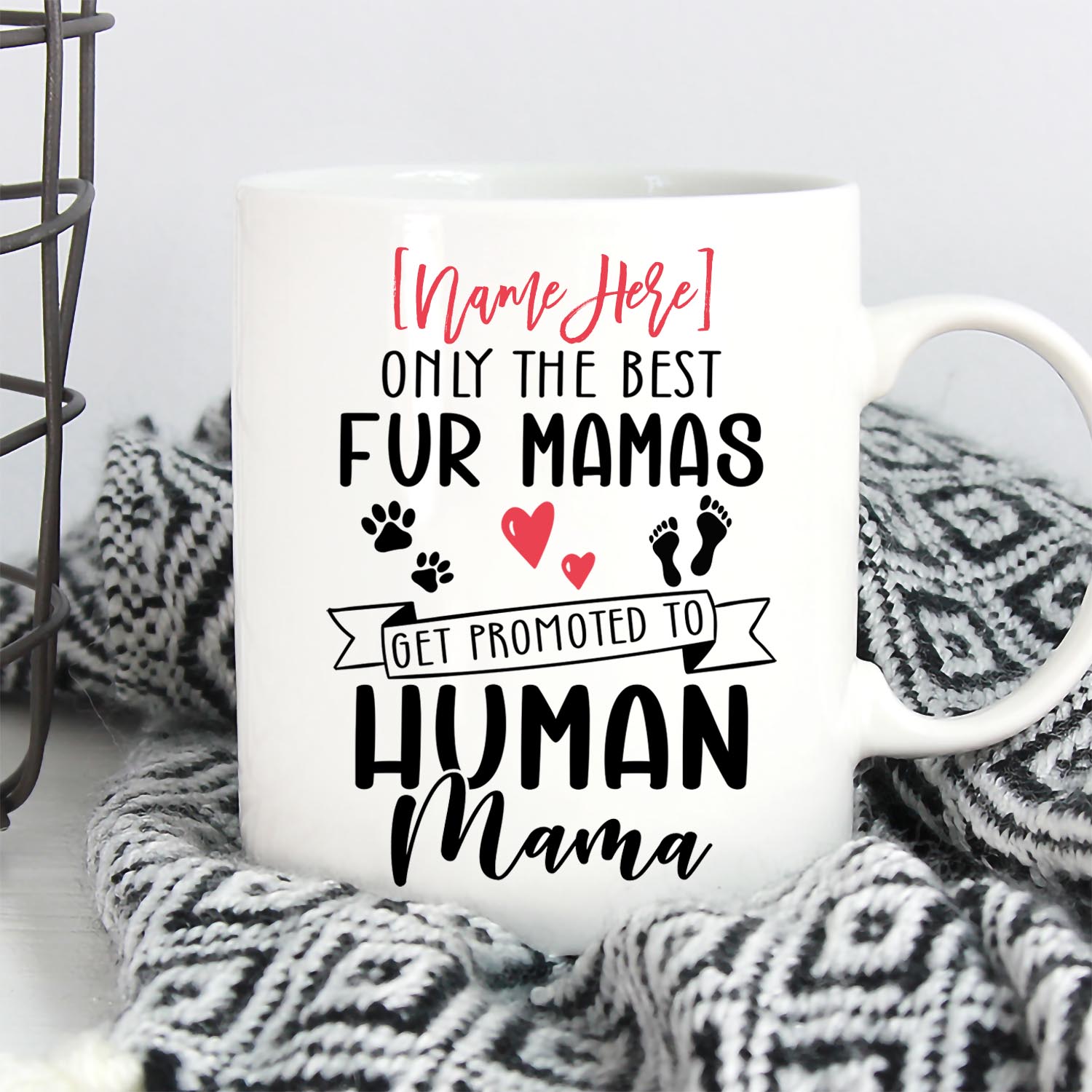 Let’s Shop Personalized New Baby Shower Gift – Promoted from Fur Mom to Human Mom Ceramic Coffee Mug!