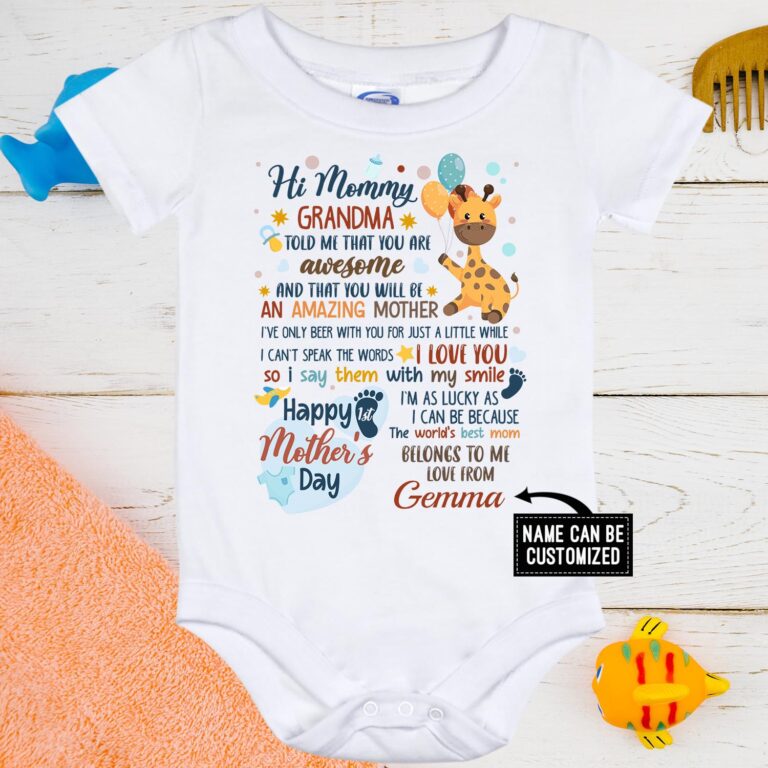 Let’s Shop Personalized New Mom Mother’s Day Gift Baby Onesie – Hi Mommy Grandma Told Me Toddler Baby Infant Bodysuit!