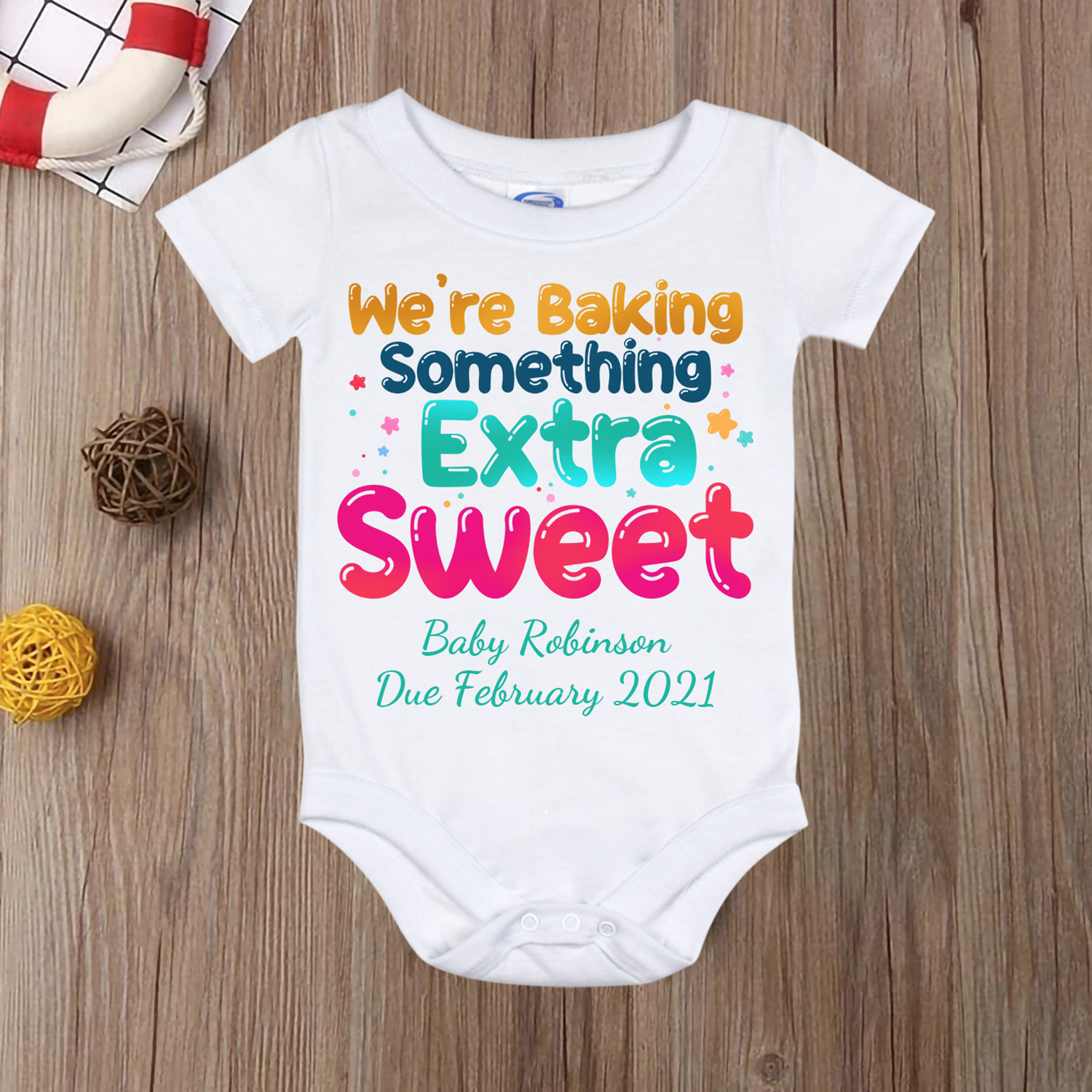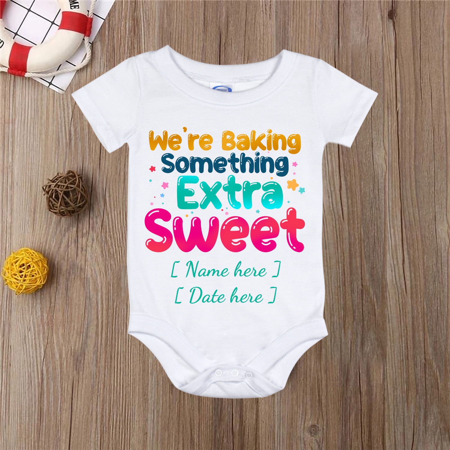 Let’s Shop Customized We’re Baking Something Extra Sweet Baby Onesie – Baby Infant Bodysuit – Customized Newborn Onesie!