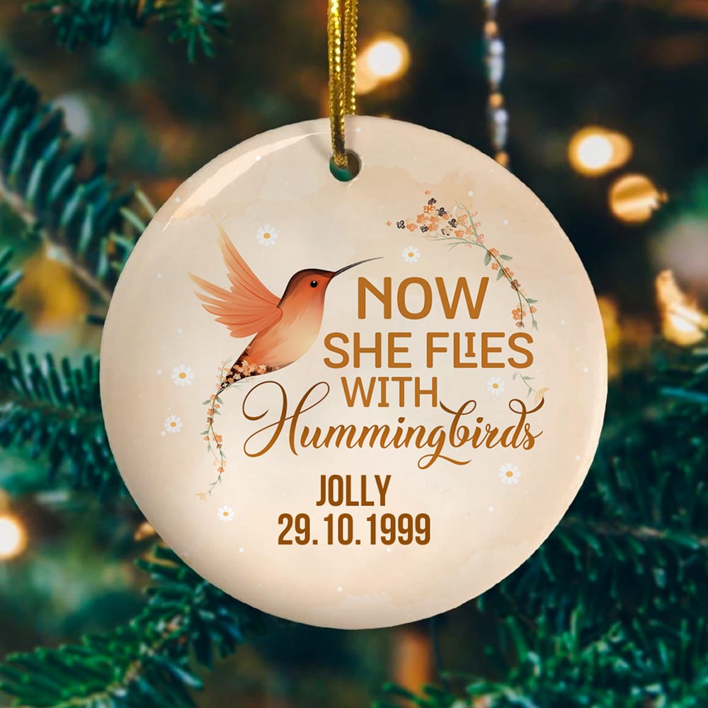 Let’s Shop Personalized Now She Flied With Hummingbirds In Loving Memory Memorial Circle Ornament Keepsake!