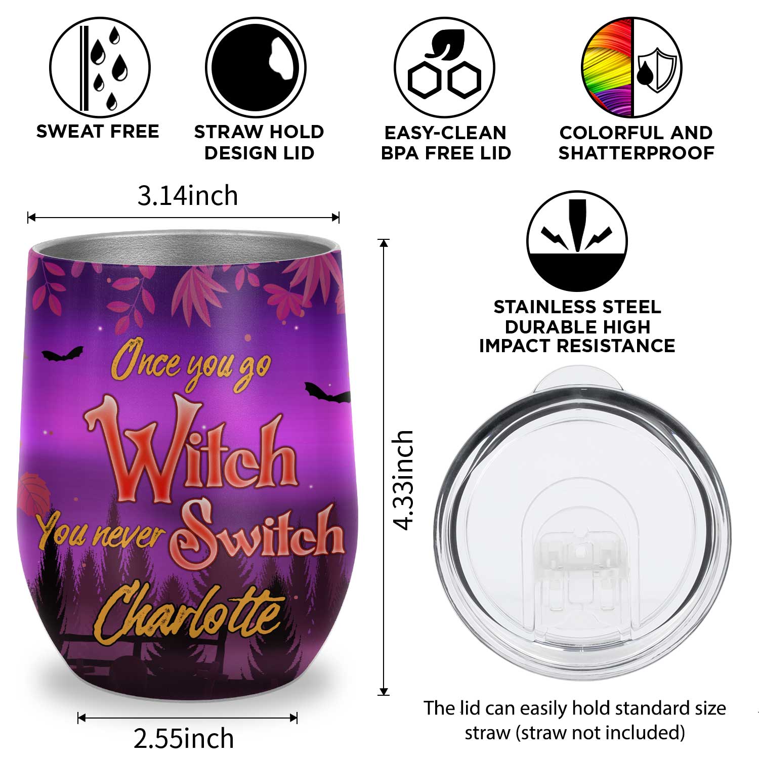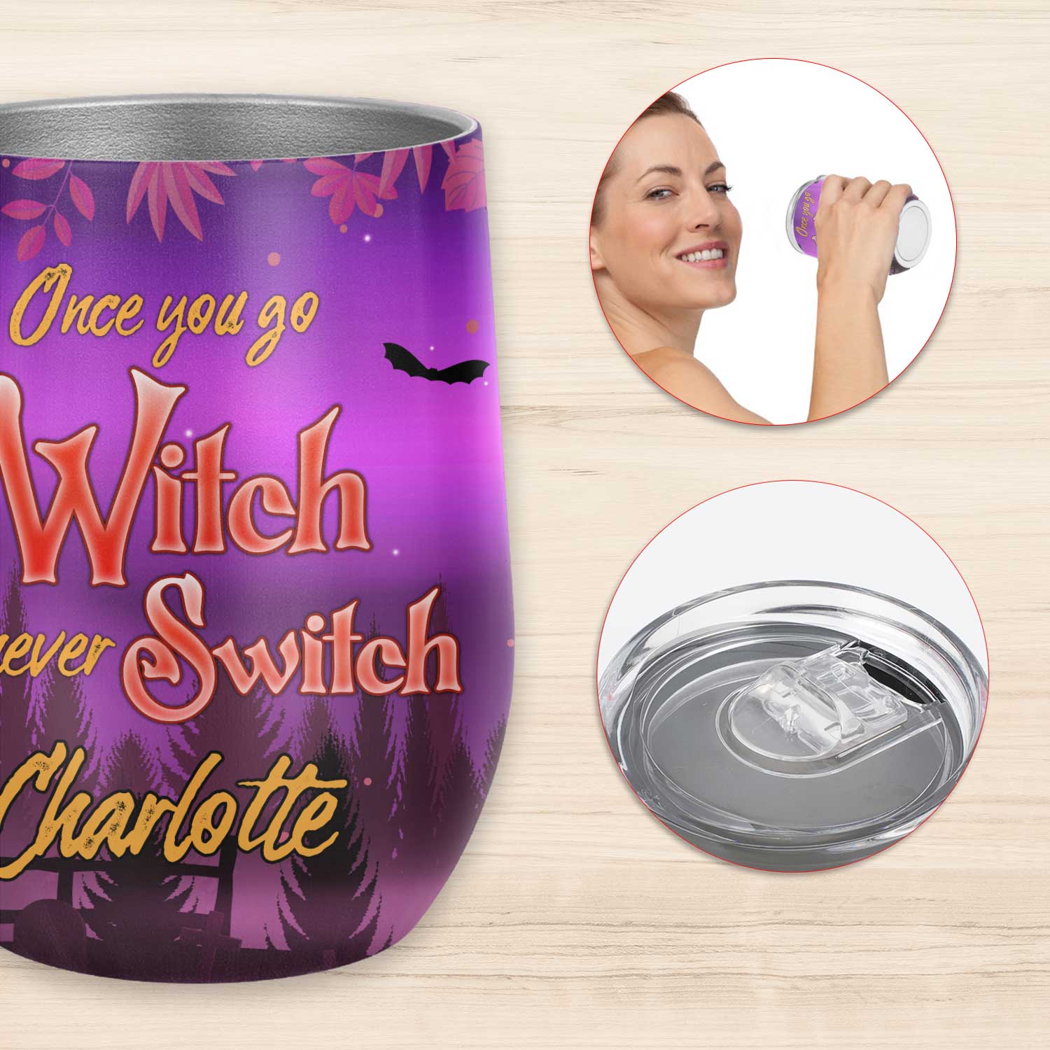 Let’s Shop Personalized Once You Go Witch You Never Switch Vacuum Insulated Cup – Wine Tumbler with Lid!