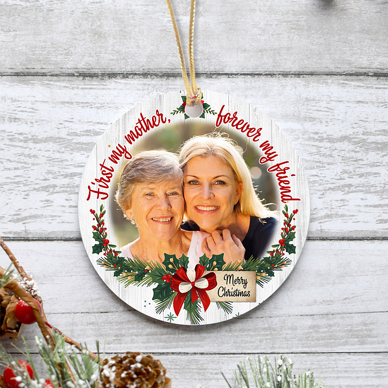 Let’s Shop Custom Photo First Mother Forever Friends – Family Circle Ornament Christmas Keepsake!