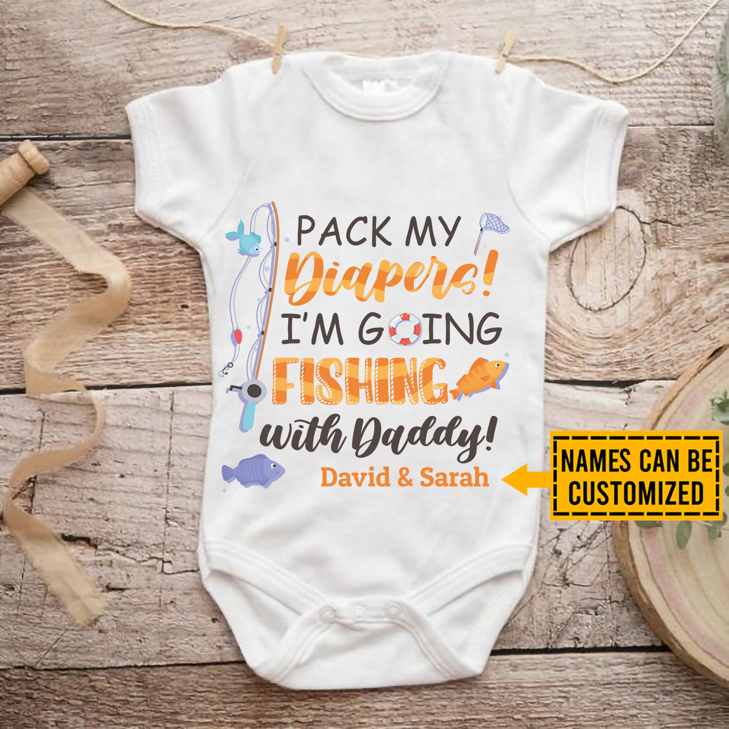 Let’s Shop Personalized Pack My Diapers baby Personalized Pack My Diapers I’m Going Fishing with Daddy Baby Onesie!