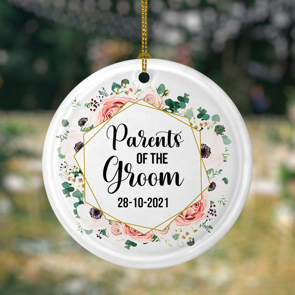 Let’s Shop Personalized Parents of the Groom Wedding Gift for Couple Flat Holiday Circle Ornament!