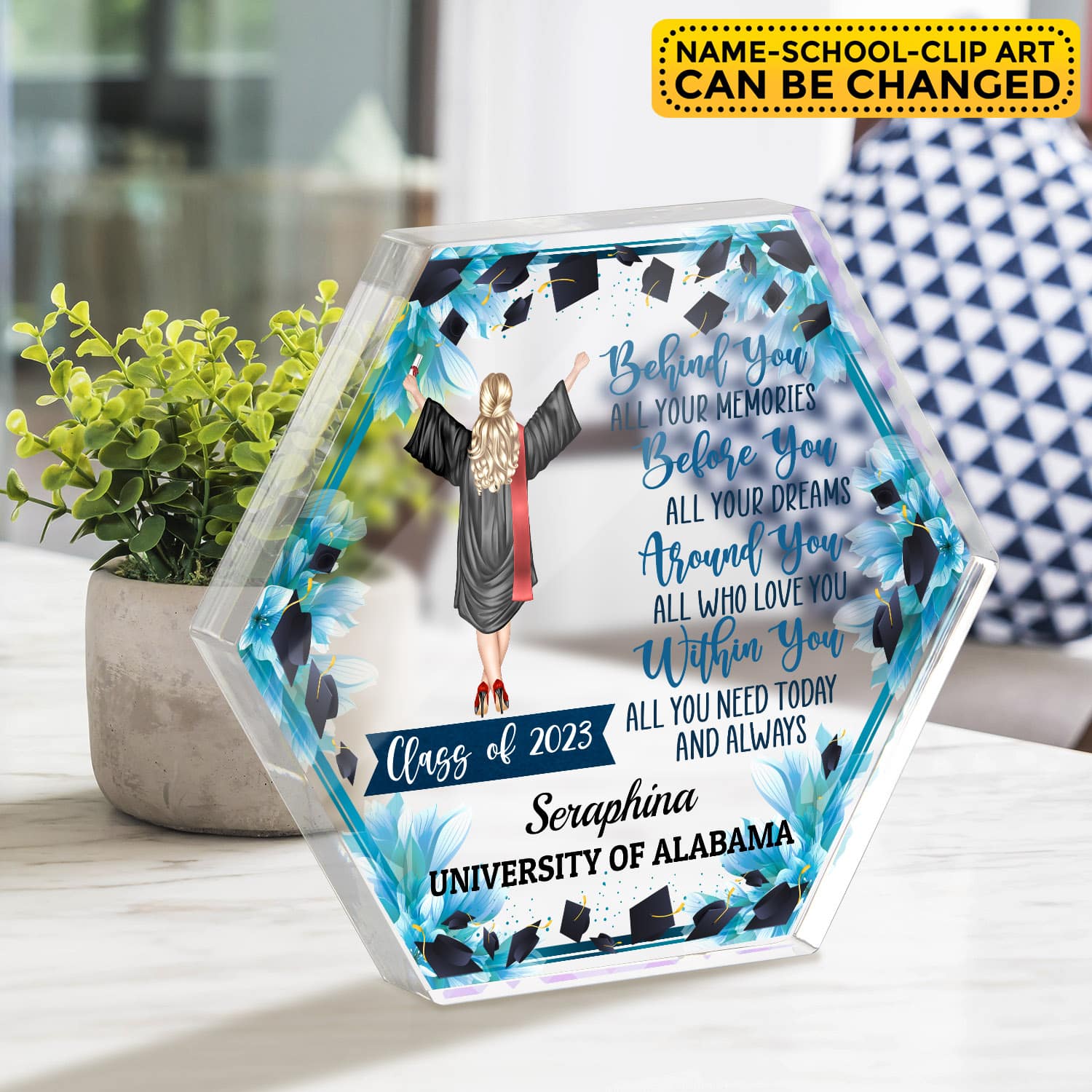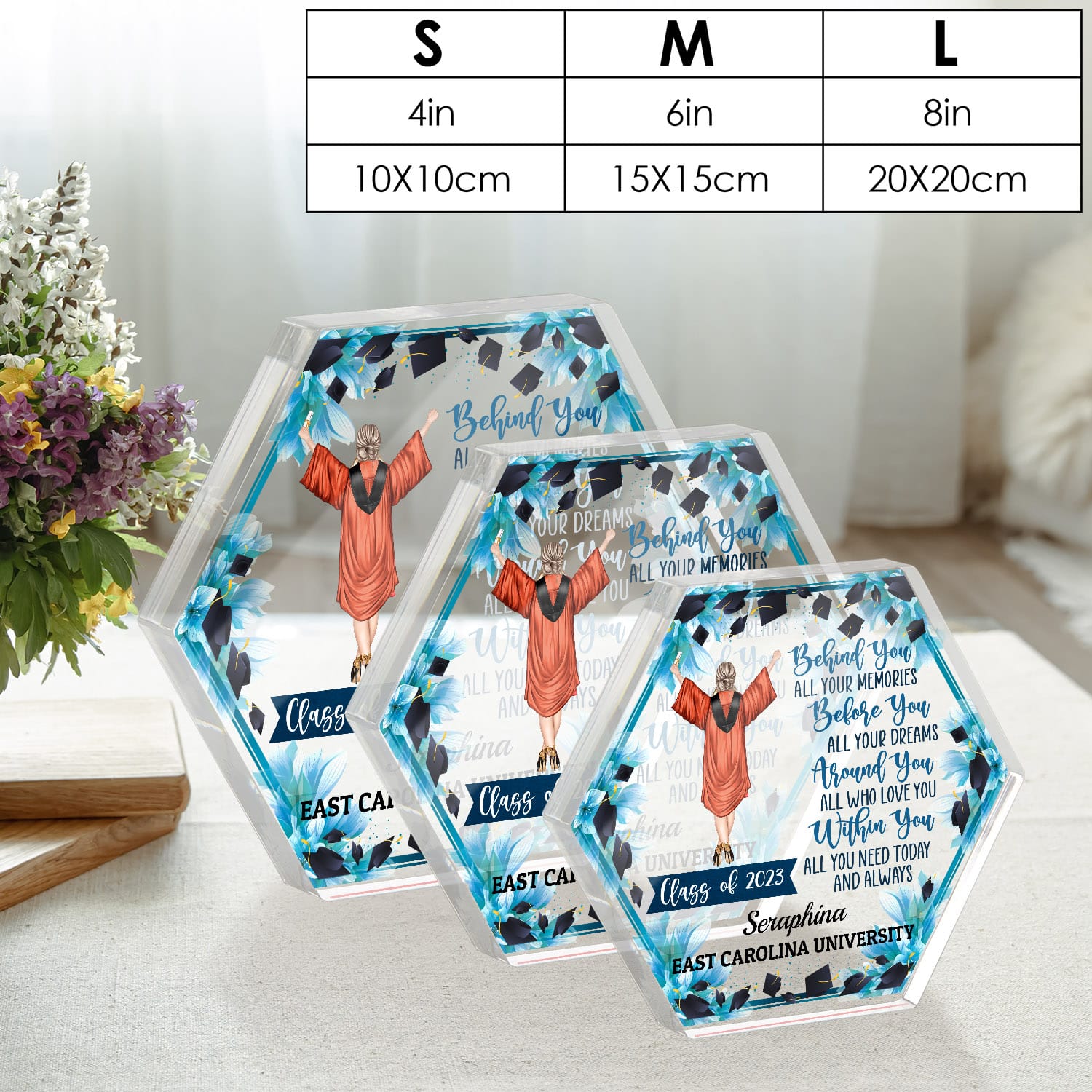 At CubeBik, besides Acrylic Plaque, we also offer tees, hoodies, sweaters, raglans, tanks, wall arts, canvases, posters, mugs, blankets, engraved jewelry, personalized necklaces, printed face masks, throw pillows, tote bags, hats, and more on our website, so do not miss our other Personalized Graduation Gifts, Personalized Graduation Keepsake, College Graduation Gifts, Graduation Gifts, Graduation Gifts for Her 2023, Graduation Gifts for Him, College Graduation Gifts for Her, Graduation Announcements 2023 related merchandise. Moreover, all the products are made-to-order and one of a kind custom designs you can’t get elsewhere in normal stores. Let’s discover CubeBik.com now and find your favorite personalized items. We can’t wait to surprise and build beautiful memories with you and your loved ones.