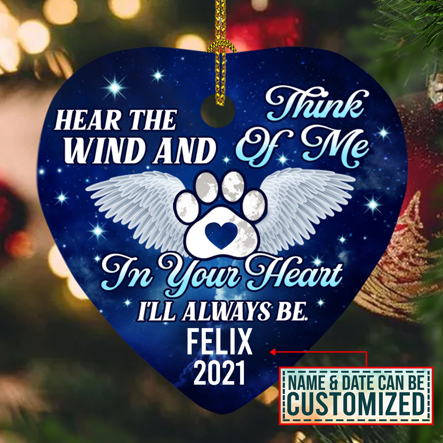 Let’s Shop Personalized Hear the Wind and Think of Me Pet Dog Cat Decorative Christmas Ornament – Flat Heart Ornament!