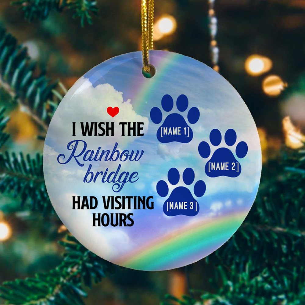 Let’s Shop Personalized I Wish The Rainbow Bridge Had Visiting Hours 3 Pets Memorial Circle Christmas Ornament Keepsake!