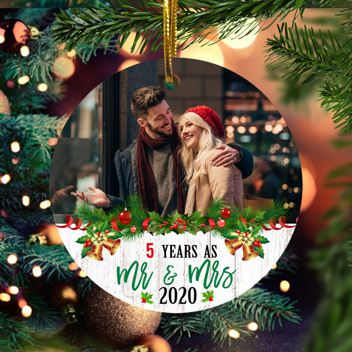 Let’s Shop Personalized Photo 2 3 4 5 Years As Mr & Mrs 2020 Circle Ornament Keepsake – Custom Image Christmas Gift!