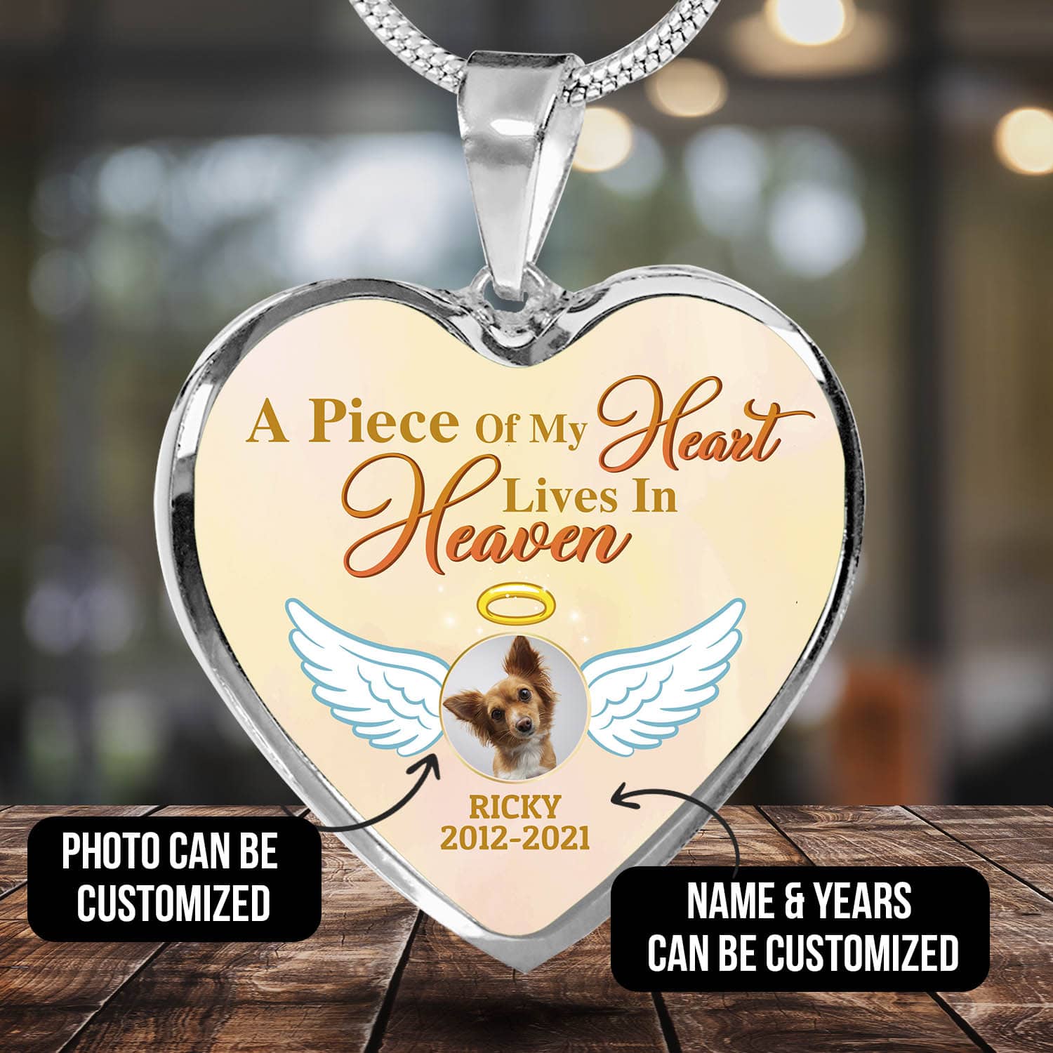 Let’s Shop Personalized Photo A Piece Of My Heart Lives In Heaven In Memory Of Puppy Dog Dad Mom Heart Pendant Necklace – Bangle!