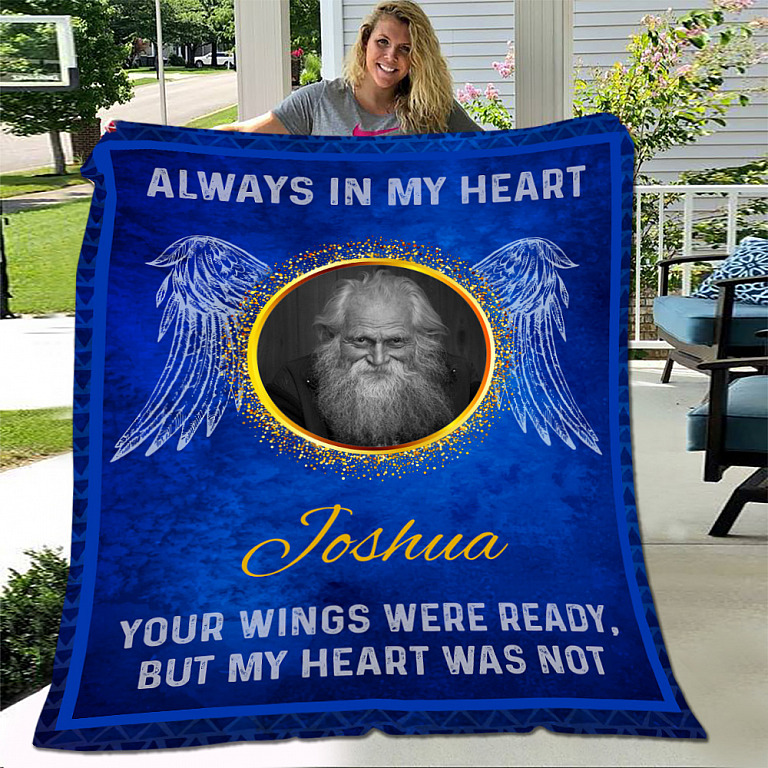 Let’s Shop Personalized Photo Always In My Heart Your Wings Were Ready But My Heart Was Not Fleece Blanket – Sherpa Blanket!