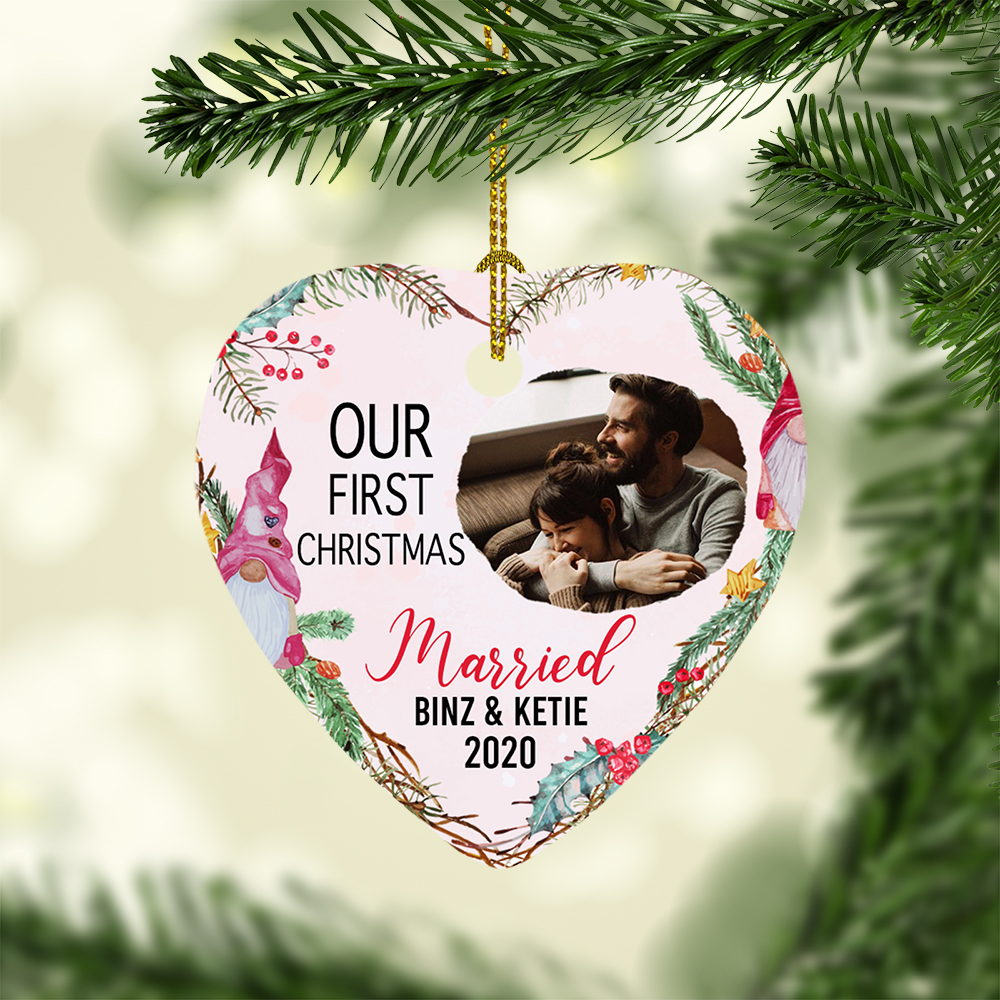 Let’s Shop Personalized Photo Couple Gift Our First Christmas Married Ornament Flat Heart – Holiday Decoration Gift!