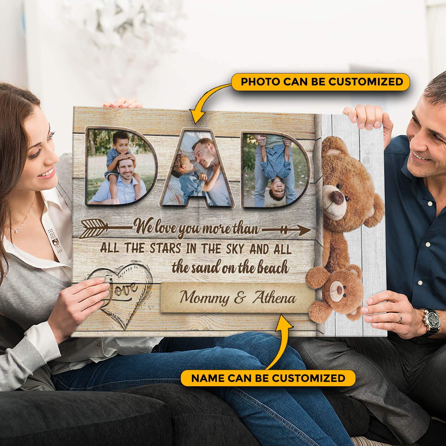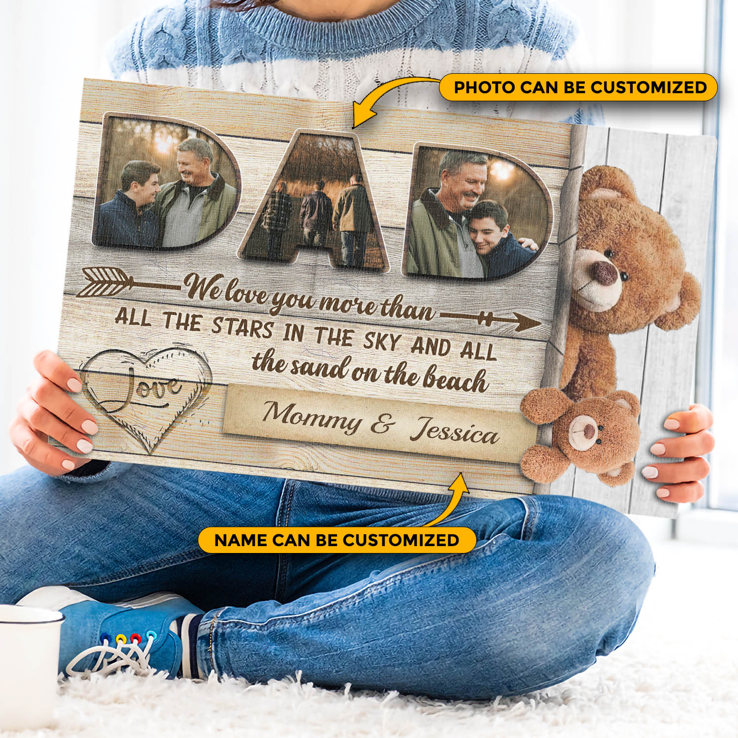 Are you spending too much time to find creative merchandise for you or suitable & special gifts for your mommy, your daddy, your son, your daughter, your children, your friends or someone you love? The struggle is over because we have various Personalized Photo Dad We Love You More Than All The Stars In The Sky Canvas Poster, Father’s Day Gift, Father’s Day Wall Art, Gift For Dad, Gift For Dad From Mom, Gift For Dad From Kids, Personalized Gift For Dad, Personalized Canvas Poster For Dad which will make perfect presents for your beloveds. In order to make your present stand out, we have created lots of unique and awesome customized photo gifts & personalized designs.