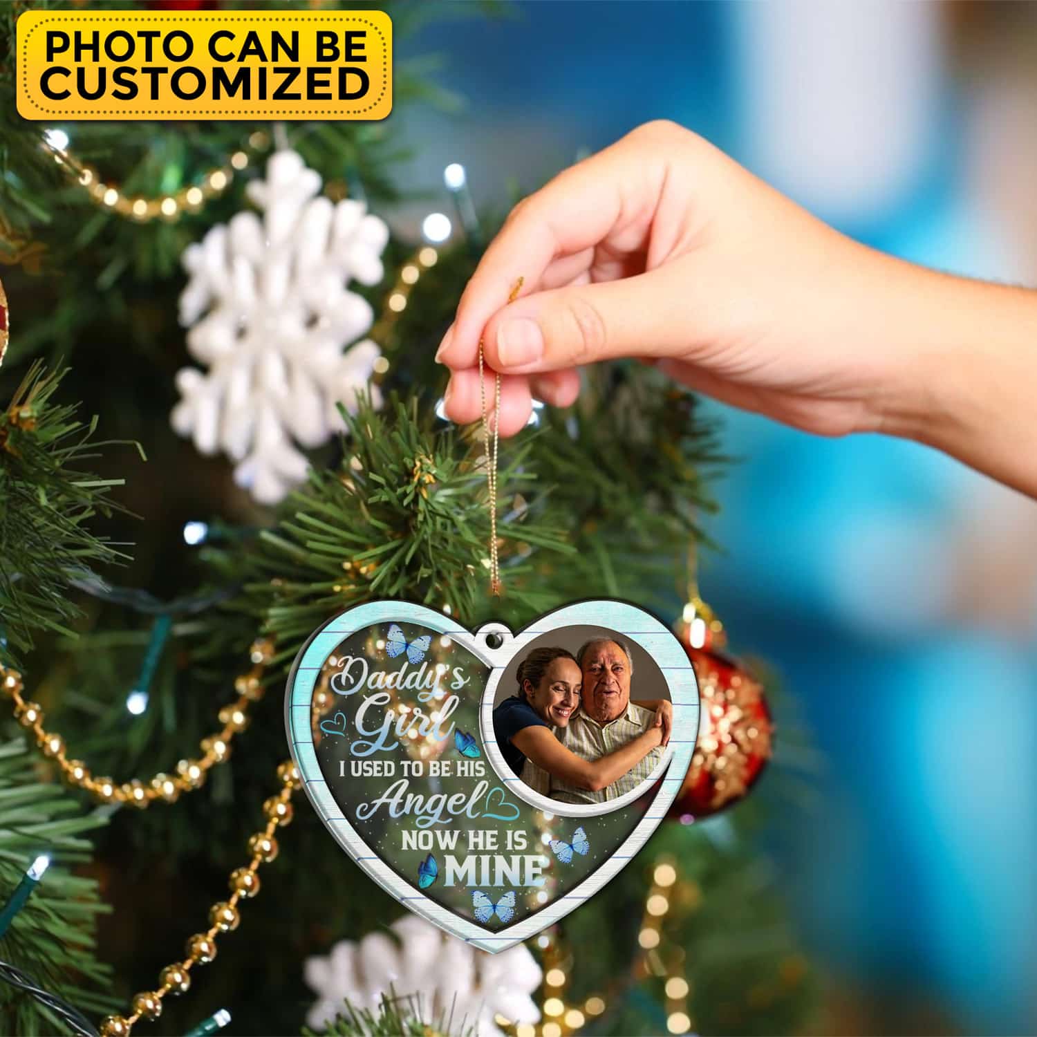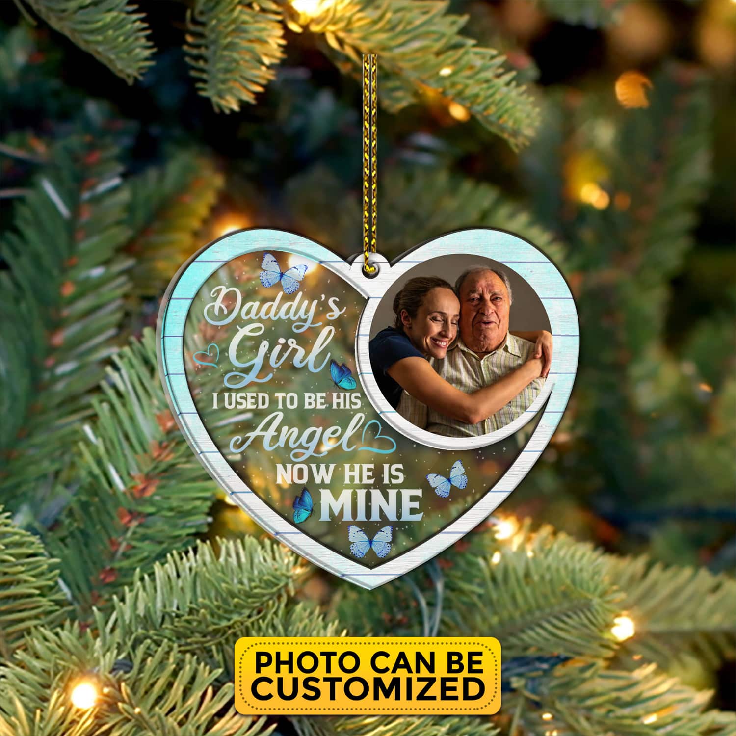 Let’s Shop Personalized Photo Daddy’s Girl I Used To Be His Angel Now He Is Mine Memorial Acrylic Wood Ornament Keepsake!