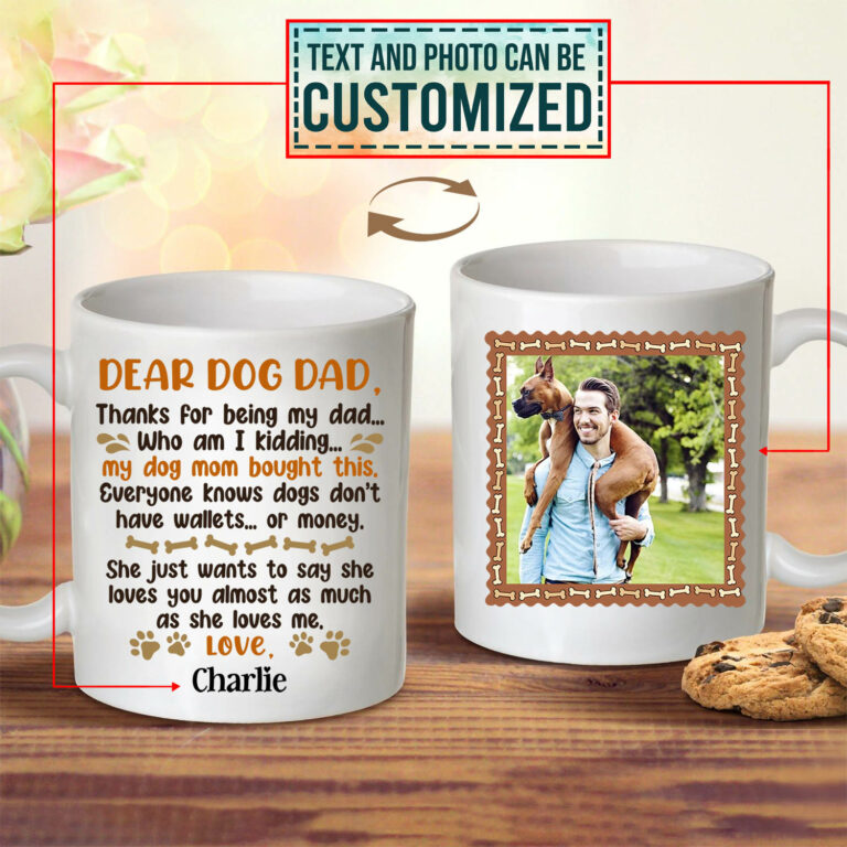 Let’s Shop Personalized Photo Dear Dog Dad Thanks for Being My Dad Who I Am Kidding Two Sided Ceramic Coffee Mug!