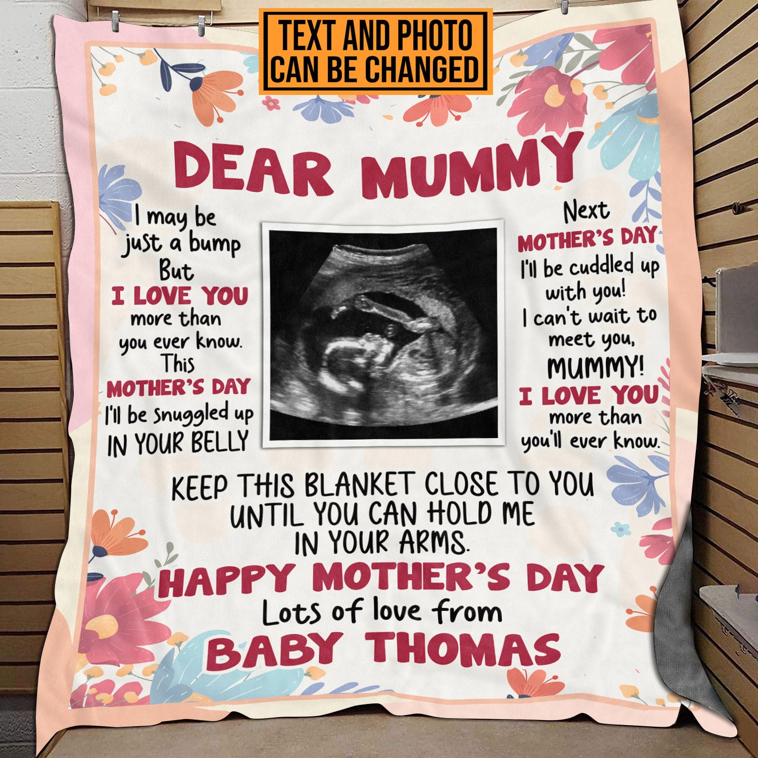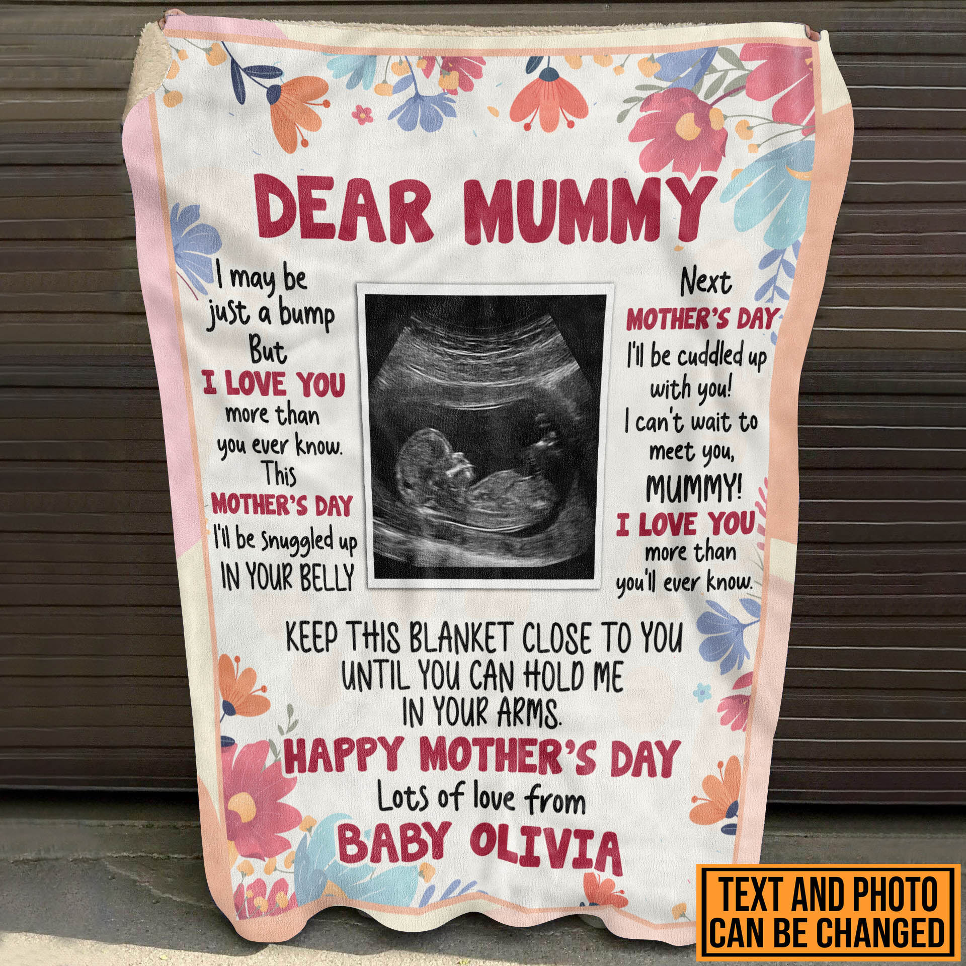 Let’s Shop Personalized Photo Dear Mummy I May Be Just A Bump Happy Mother’s Day Fleece Blanket – Sherpa Blanket!