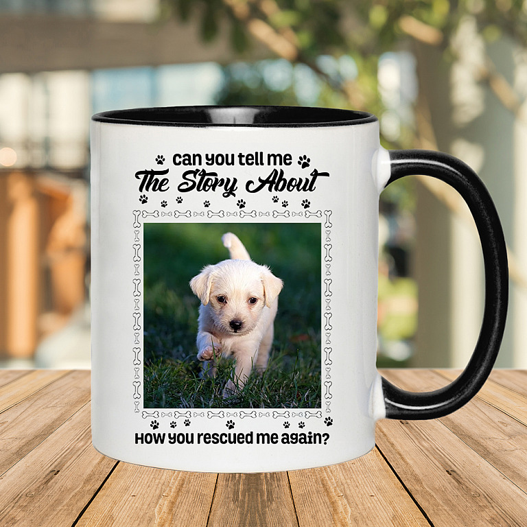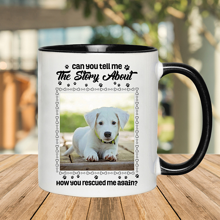 Let’s Shop Personalized Photo Dog Can You Tell Me the Story About how You Rescued Me Again Custom Image Accent Mug!