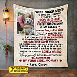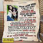 Let’s Shop Personalized Photo Woof Woof Woof Thanks For Loving Me Fleece Blanket – Premium Sherpa Blanket – Custom Photo For Dog Mom Gift!