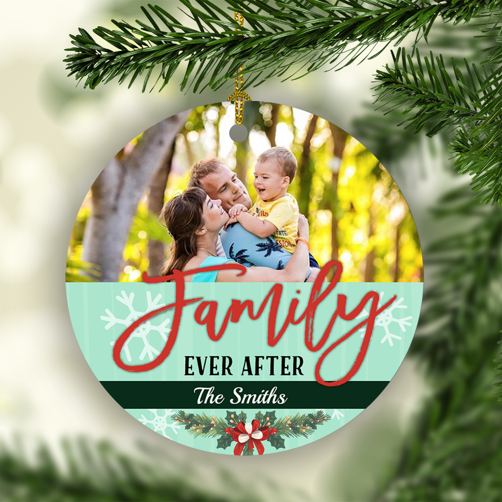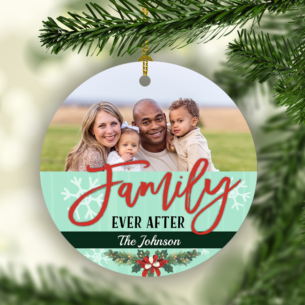 Let’s Shop Personalized Photo Family Ever After Custom Your Family’s Name Christmas Circle Ornament Keepsake!