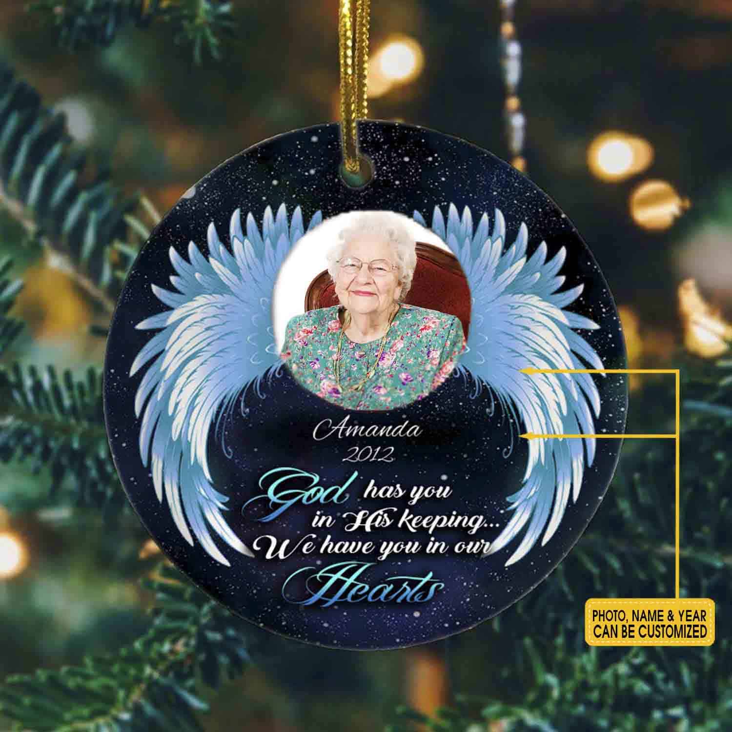 Let’s Shop Personalized Photo God Has You In His Keeping We Have You In Our Hearts Decorative Christmas Ornament!