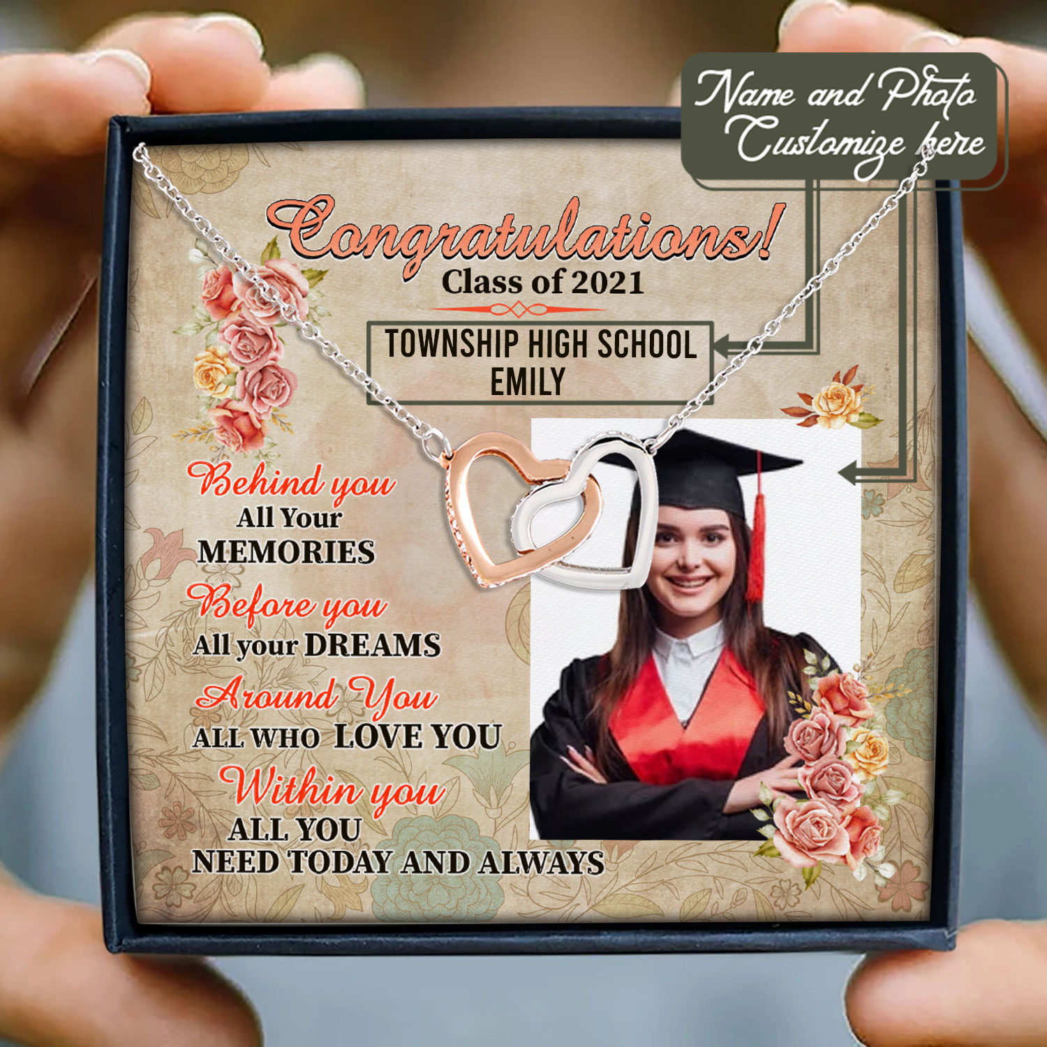 Let’s Shop Personalized Photo Graduation Congratulation Wishes All You Need Today & Always Interlocking Hearts Necklace!