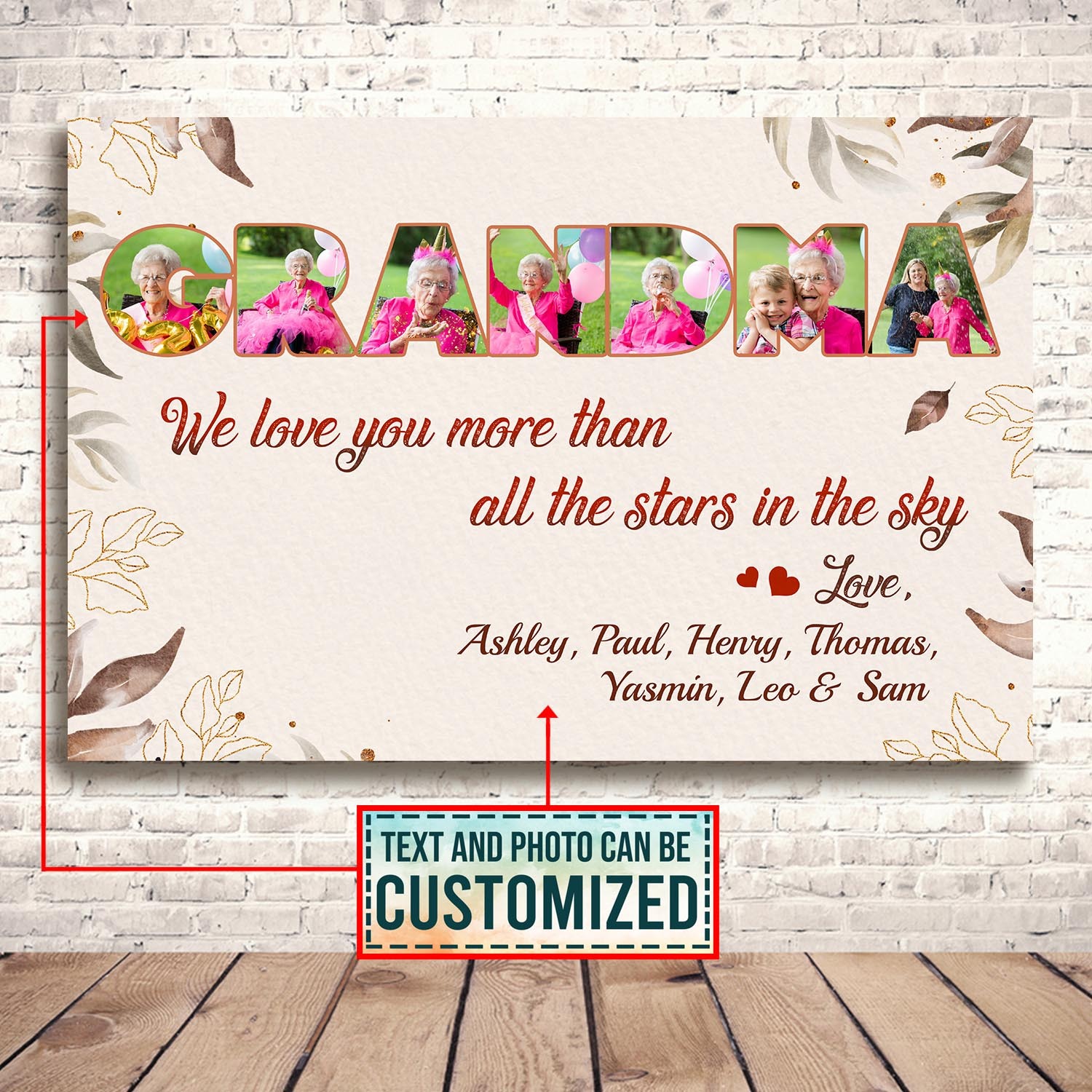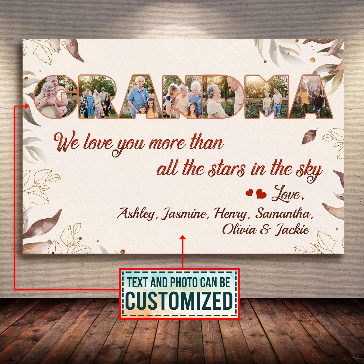 Are you spending too much time to find creative merchandise for you or suitable & special gifts for your mommy, your daddy, your son, your daughter, your children, your friends or someone you love? The struggle is over because we have various We Love You More than All the Stars in The Sky, We Love You Grandma, We Love You Grandma Personalized, Personalized Grandma Gifts, Personalized Grandma Gifts with Names, Personalized Grandma Garden Flag, Personalized Grandma Wall Art which will make perfect presents for your beloveds. In order to make your present stand out, we have created lots of unique and awesome customized photo gifts & personalized designs.