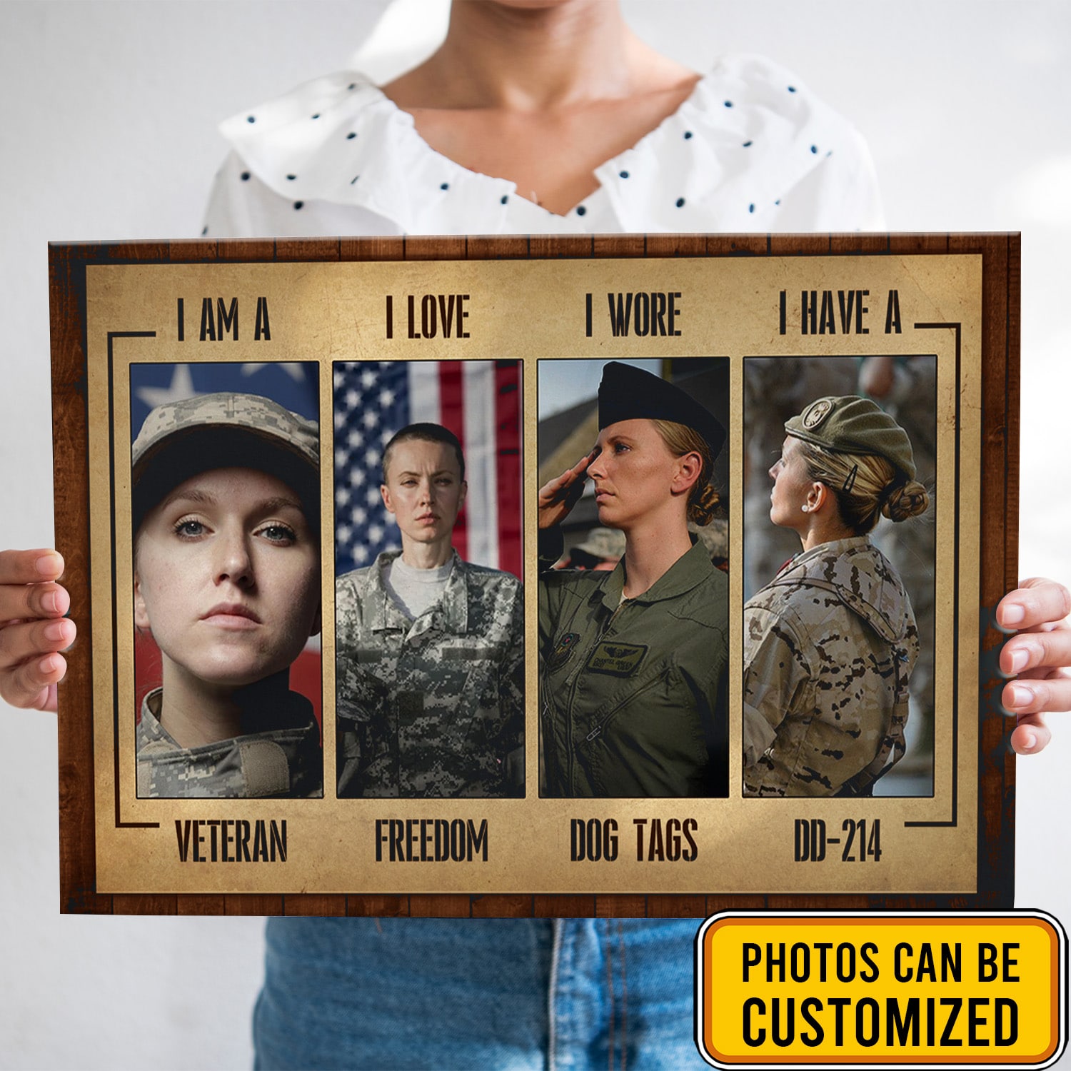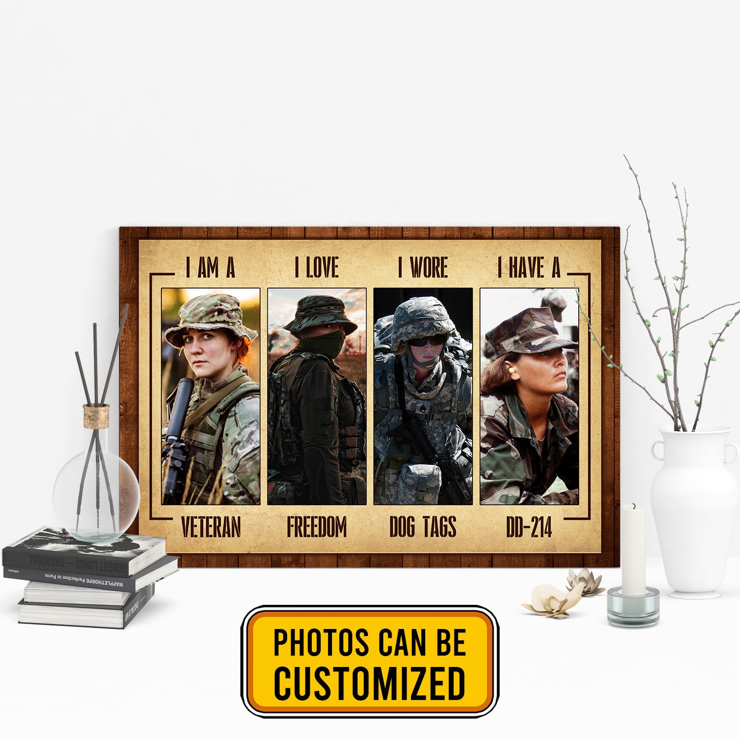 Let’s Shop Personalized Photo I Am A Veteran I Love Freedom I Wore Dog Tags Canvas Prints – Women Veteran Unframed Poster!