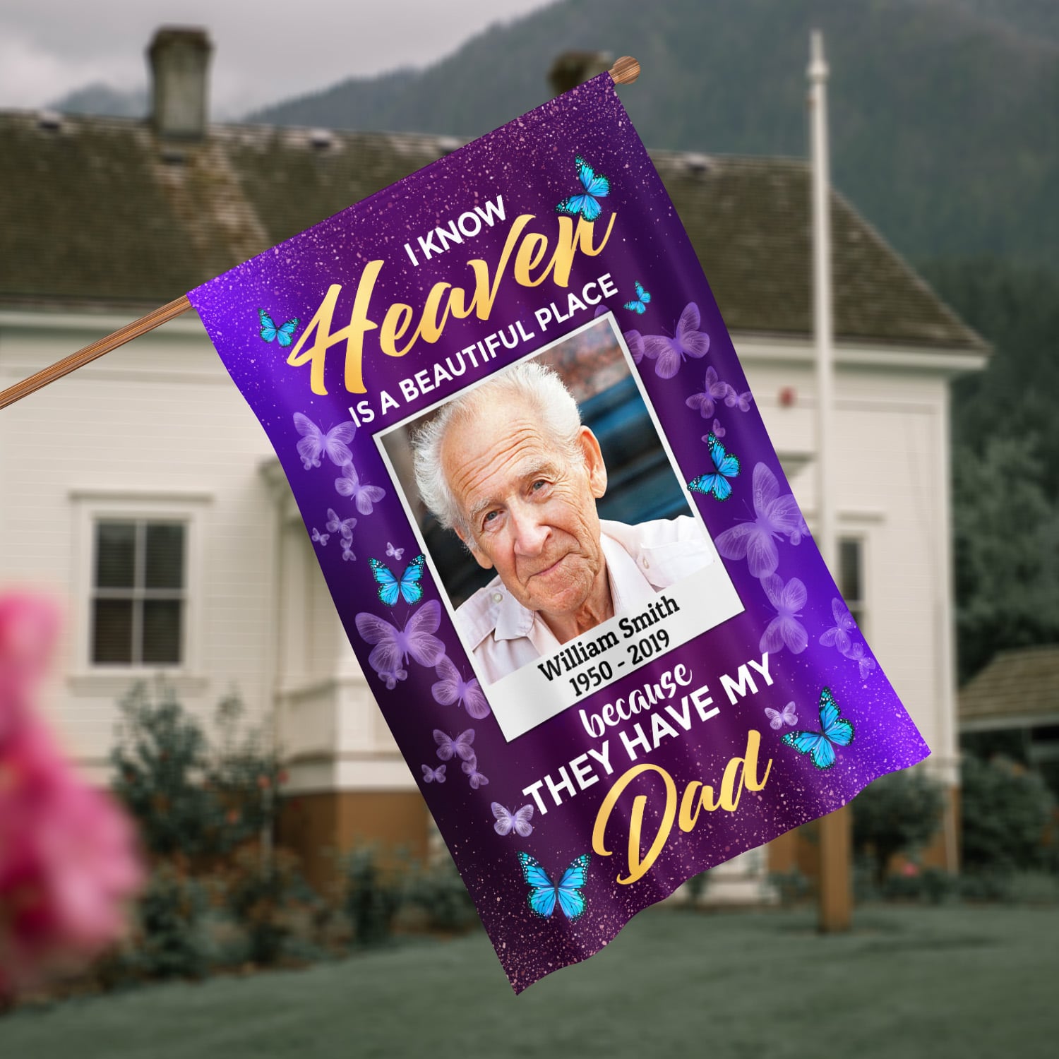 Let’s Shop Personalized Photo I Know Heaven Is A Beautiful Place Because They Have My Dad Garden Flag – Memorial House Flag!