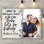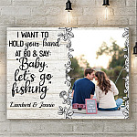 Let’s Shop Personalized Photo I Want to Hold Your Hand at 80 Say Baby Let’s Go Fishing Framed Canvas – Unframed Poster!