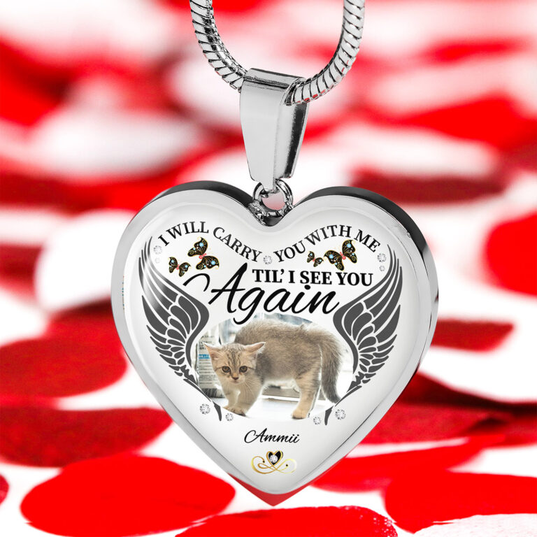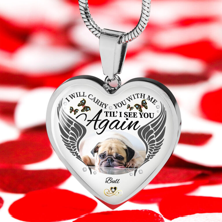 Let’s Shop Personalized Photo I Will Carry You With Me Til’ I See You Again Pet Memorial Heart Pendant Necklace – Bangle!