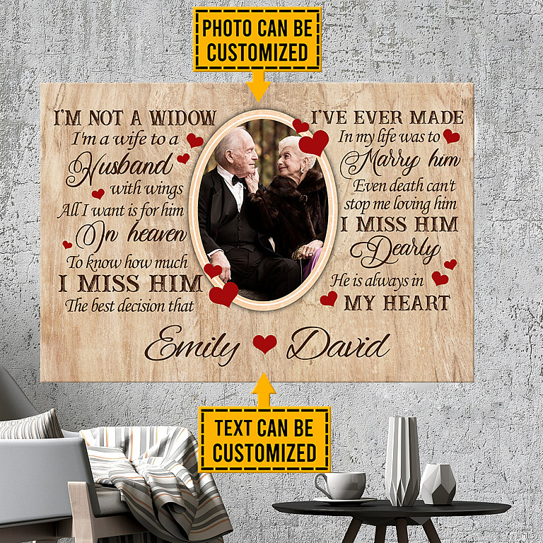 Let’s Shop Personalized Photo I’m Not A Widow I’m A Wife To A Husband With Wings He Is Always In My Heart Canvas-Poster!