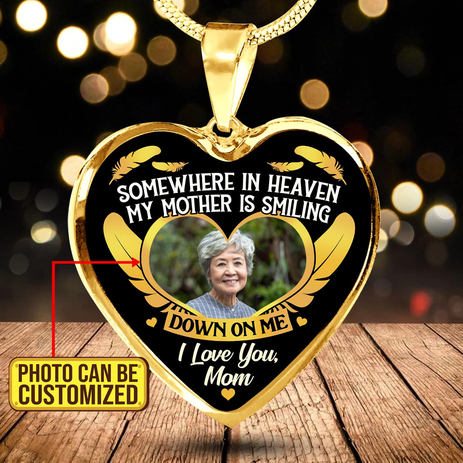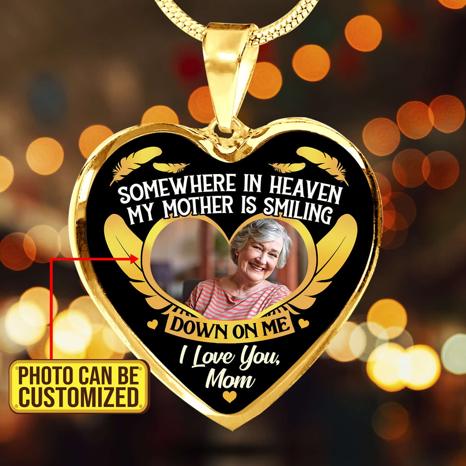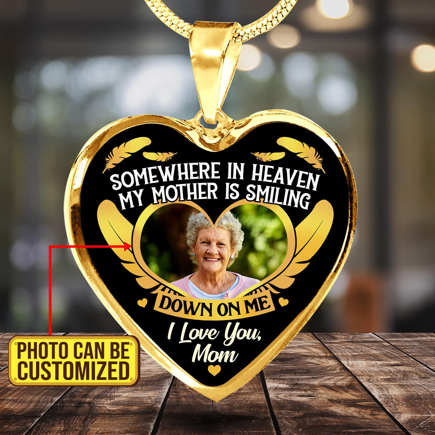 Let’s Shop Personalized Photo Somewhere In Heaven My Mother Is Smiling Heart Pendant Necklace – Memorial Mom Custom Photo Necklace!