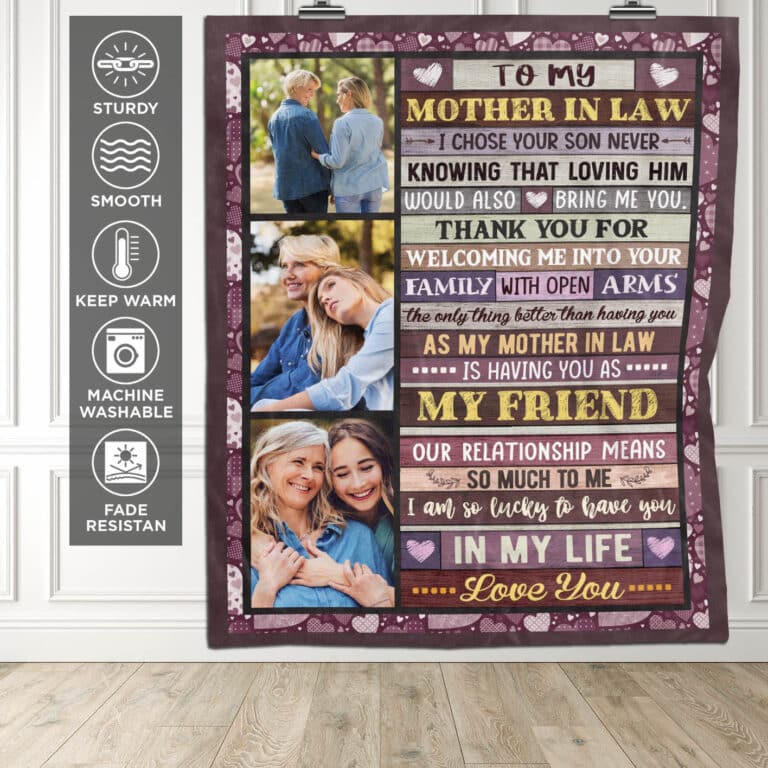 Are you spending too much time to find creative merchandise for you or suitable & special gifts for your mommy, your daddy, your son, your daughter, your children, your friends or someone you love? The struggle is over because we have various Personalized Photo Mother in Law Gifts from Daughter in Law Throw Blanket, Mother’s Day Birthday Gifts for Mother in Law, Mother in Law Gifts from Daughter in Law Blankets for Bed Sofa, To Mother in Law Blanket, Mother in Law Custom Blanket, Mother in Law Gift, Personalized Mother in Law Gift, Mother in Law Gift Photo Blanket which will make perfect presents for your beloveds. In order to make your present stand out, we have created lots of unique and awesome customized photo gifts & personalized designs.