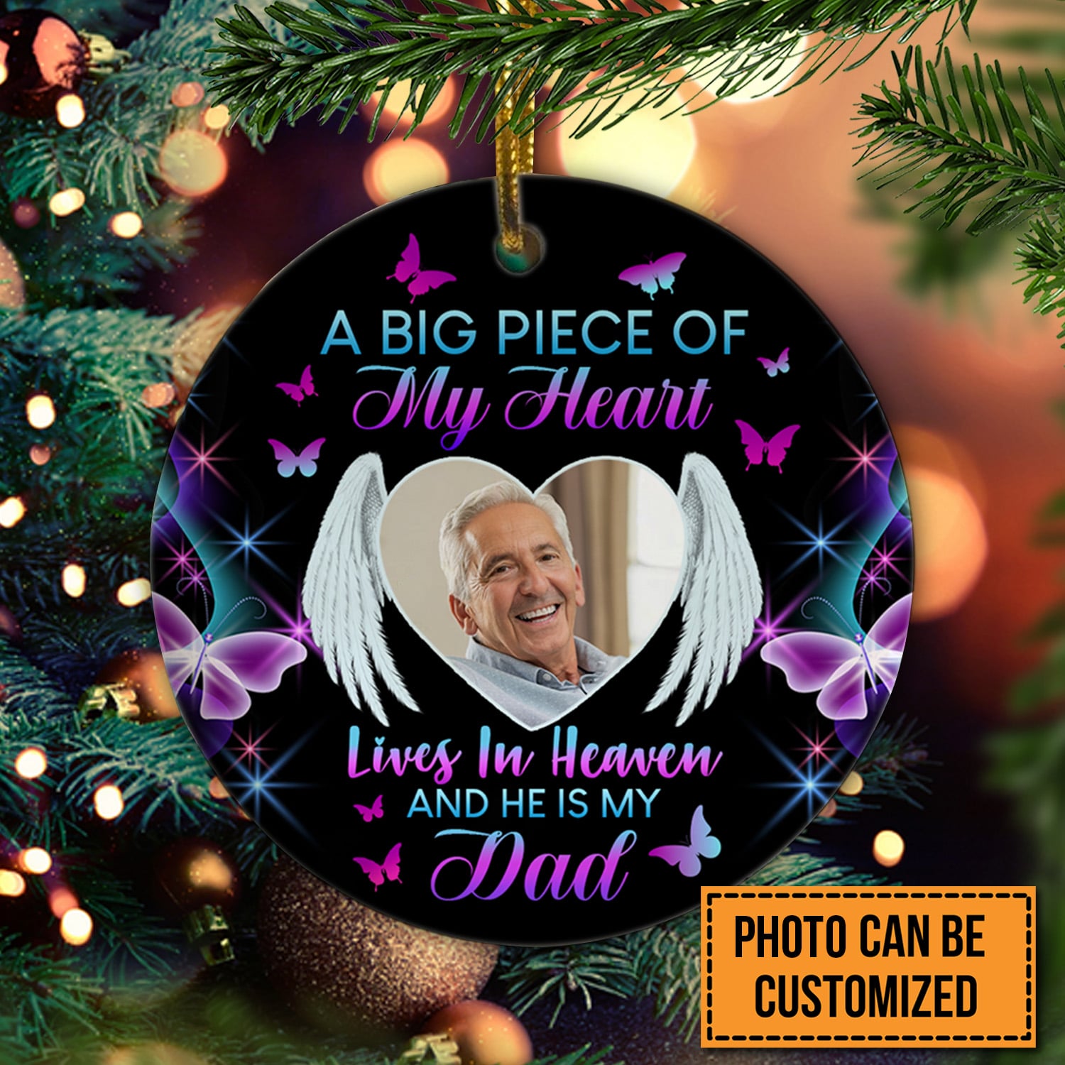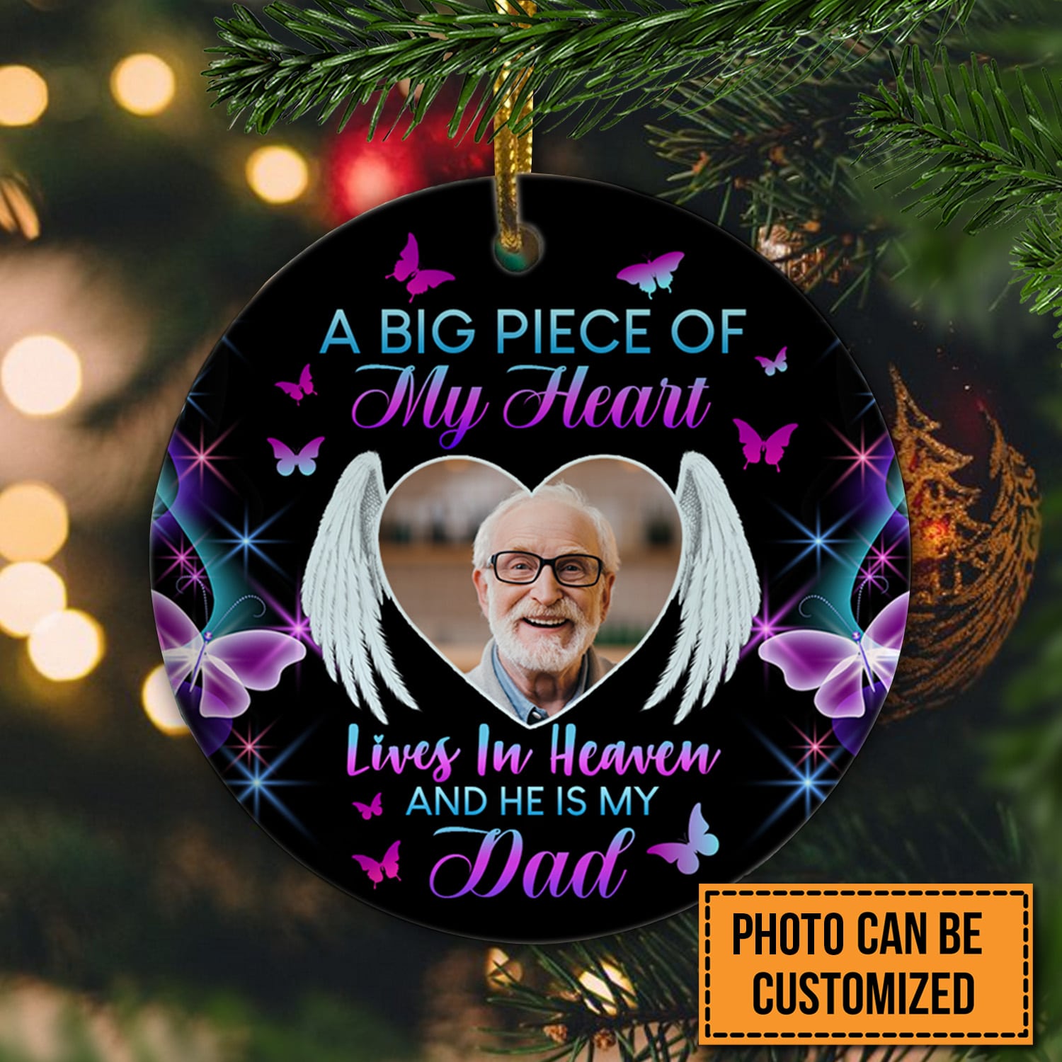Let’s Shop Personalized Photo My Dad A Big Piece Of My Heart Lives In Heaven Decorative Christmas Circle Ornament – Memorial Customized Ornament!